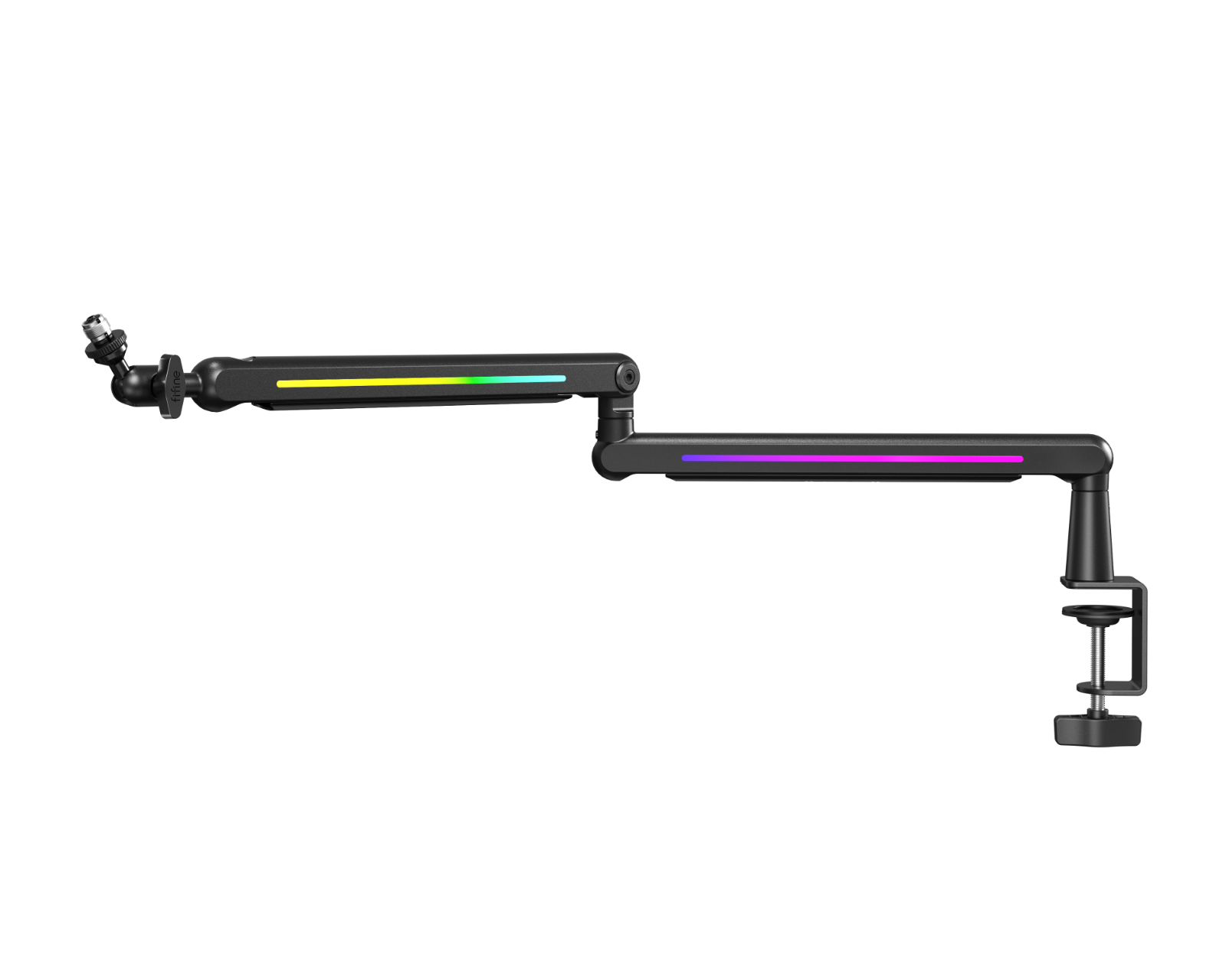 BM88 Pro är en mikrofonarm från Fifine. Den erbjuder en högprofilsdesign som förbättrar din streaming- och inspelningsmiljö. Enheten är utrustad med en 360-graders roterande mikrofonhållare som säkerställer en sömlös inspelningsupplevelse. Mikrofonarmen är tillverkad för att passa de flesta skrivbord och bänkar med sina 3/8"- och 5/8"-adaptrar.Den är kompatibel med populära mikrofoner som HyperX, Blue Yeti, Shure SM7B och Rode, vilket gör den mångsidig för olika användningsområden. Den justerbara designen inkluderar ett roterande och svängande kulled för enkel anpassning, vilket ger en lutning från -90° till +90° och full 360° rotation. Även kabelhantering är inbyggd för en organiserad arbetsmiljö.