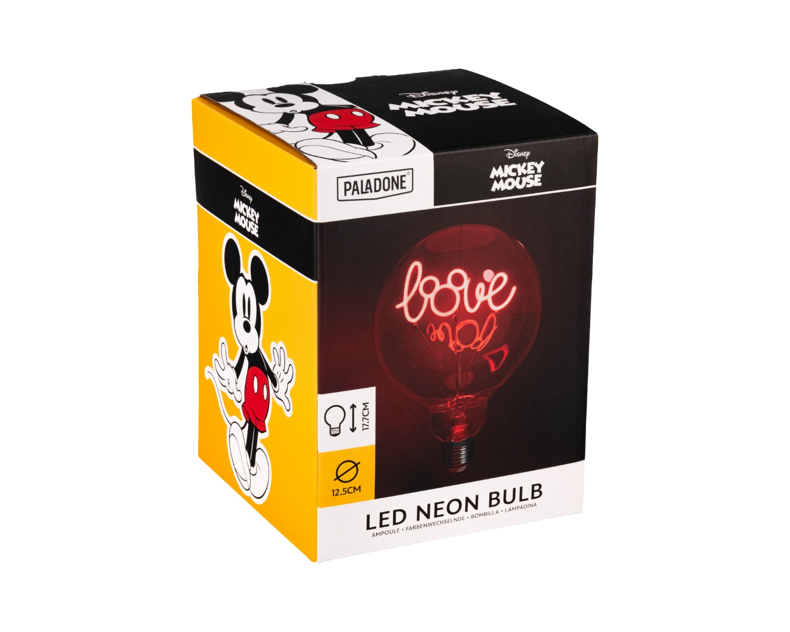 Sprid Disney-magi i ditt hem med Mickey LED Neon Glödlampa, perfekt för att skapa en mysig och lekfull atmosfär. Lampan är 24,3 cm hög och har en dekorativ E27 LED-glödlampa som elegant stavar ordet "love" med de ikoniska Musse Pigg-öronen. Glödlampan lyser med en varm röd glöd och är omsluten av ett klart glas, vilket gör den till en utmärkt dekorationsdetalj i varje rum.Lampans keramiska bas ger både stabilitet och stil, medan den medföljande strömkabeln gör den enkel att använda. Officiellt licensierad av Disney passar denna lampa perfekt i sovrum eller andra utrymmen som behöver en magisk touch.