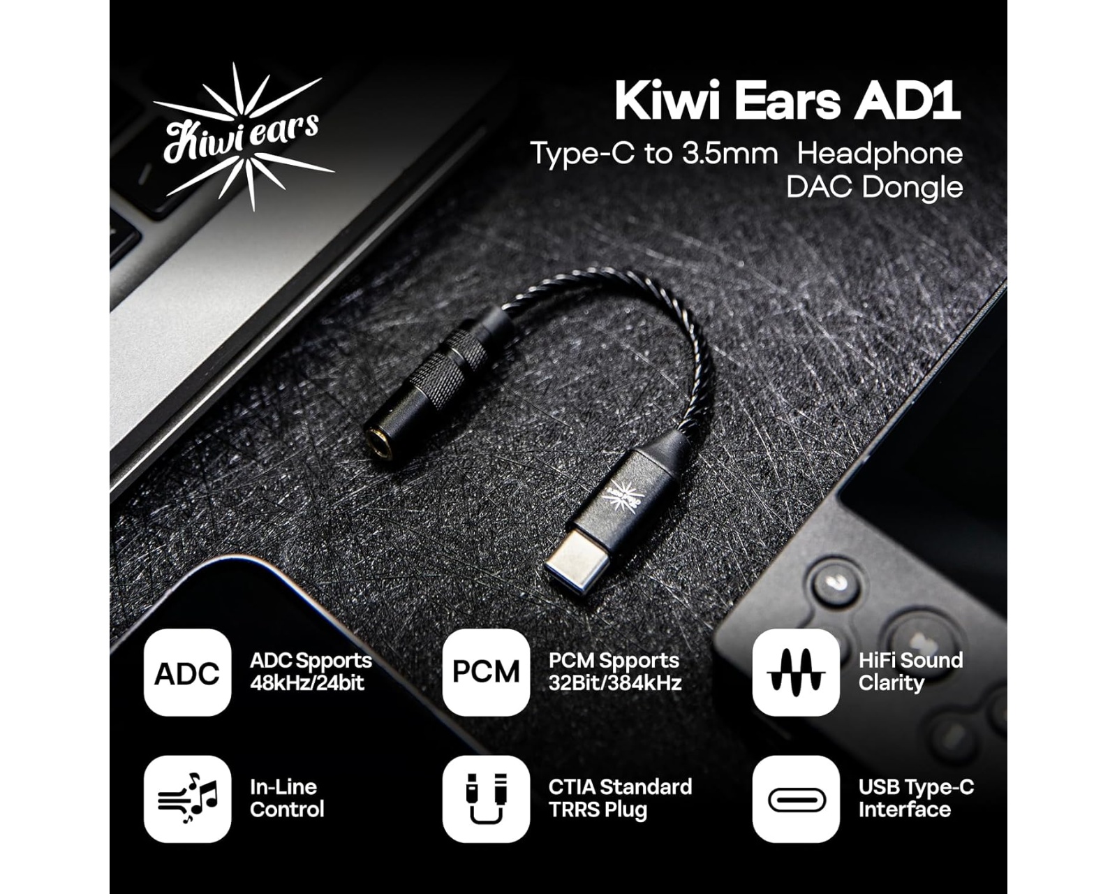 Linsoul Kiwi Ears AD1 är en DAC-adapter som möjliggör anslutning mellan USB-C-enheter och hörlurar med 3,5 mm-kontakt. Den stöder högupplöst ljudsampling upp till 32 bit/384 kHz och använder KT02H20-chipet för att säkerställa stabil ljudavkodning. Produkten är avsedd för användning med hörlurar, bärbara datorer och smartphones.Adapterkabeln är konstruerad med hög hållbarhet och tillverkad av robusta material för att klara av upprepade anslutningar och frånkopplingar. Metallbelagda kontakter säkerställer förlustfri ljudöverföring, medan CTIA-standardiseringen garanterar kompatibilitet med de flesta moderna mikrofoner. Enheten erbjuder en kompakt design som gör den lätt att transportera, vilket är fördelaktigt för både mobile användningar och studior.