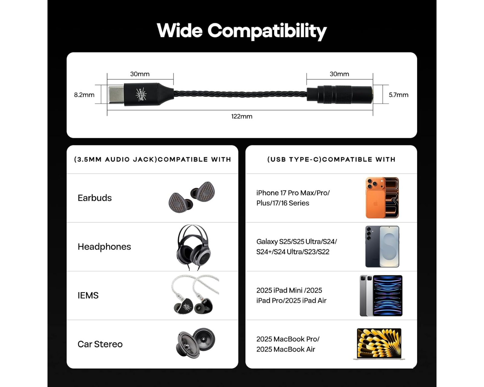 - Kompatibel med hörlurar och bärbara enheter