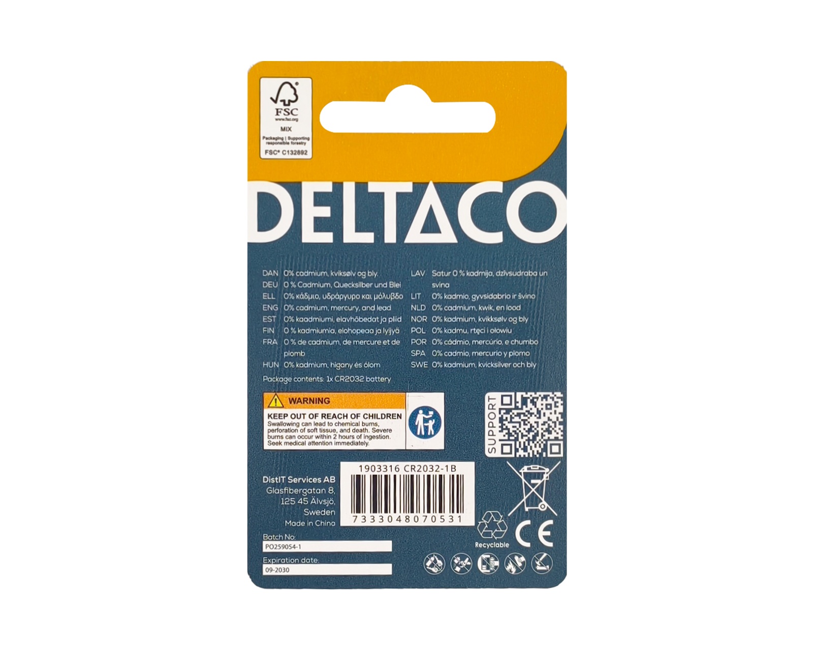 CR2032 Litium 1-pack är ett batteri för användning inom hem och fritid. Detta litiumbatteri är speciellt utformat för att leverera pålitlig ström till olika enheter som kräver ett kompakt och effektivt energikällor. Med en lång livslängd och hög energitäthet är CR2032 ett utmärkt val för exempelvis fjärrkontroller, klockor och små elektroniska apparater.Batteriet är tillverkat av högkvalitativa material vilket säkerställer en stabil och konsekvent prestanda under hela dess livslängd. Den kompakta formen gör det enkelt att installera i begränsade utrymmen, och den pålitliga kemiska sammansättningen ger en låg självurladdningshastighet, vilket innebär att det kan lagras under längre perioder utan att förlora sin effekt. CR2032-batteriet är också temperaturbeständigt, vilket gör det lämpligt för användning i såväl kalla som varma miljöer.