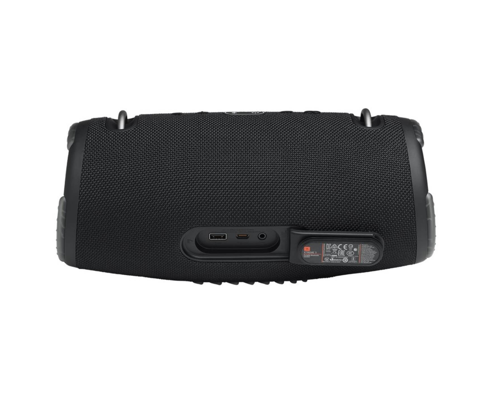 JBL Xtreme 3 är en Bluetooth-högtalare från JBL som erbjuder kraftfullt och dynamiskt ljud. Den har en batteritid på 15 timmar och är designad för utomhusbruk med en IP67-klassning för vatten- och dammtålighet. Produkten passar för användning vid aktiviteter som strandbesök, picknickar och andra utomhusevenemang.Högtalaren är konstruerad med fyra högtalarelement och två basreflektorer vilket ger ett detaljerat ljud med djupt basregister. Byggkvaliteten är robust och den har en ergonomisk bärrem för enkel transport. JBL Xtreme 3 kan enkelt anslutas till upp till två enheter samtidigt, vilket möjliggör att flera användare kan dela musiken. En inbyggd powerbank erbjuder möjlighet att ladda externa enheter direkt från högtalaren utan att bryta upplevelsen.