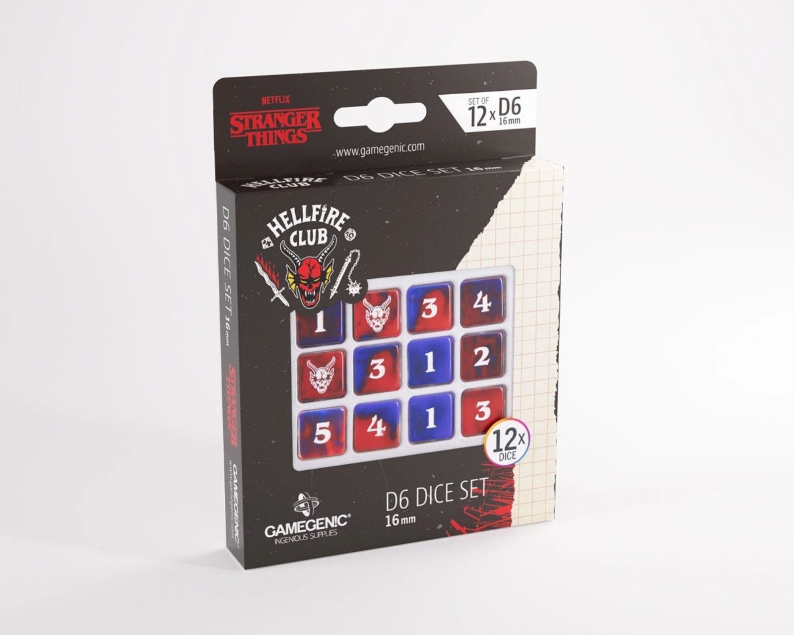 Hellfire Club D6 Tärningsset 16mm är en uppsättning med 12 stycken tärningar av hög kvalitet från Stranger Things™. Dessa sexsidiga tärningar är tillverkade av resin och är en komponent som är avsedd för RPG, brädspel samt bordsspel. Tärningarna har en storlek på 16 mm och kännetecknas av jämna, rundade kanter som ger en smidig känsla vid kastning, samt tydlig synlighet av siffrorna. Tillverkningsmaterialet, resin, bidrar till en robust och hållbar byggkvalitet.Designen inkluderar en unik funktion där "Nummer 6" representeras av Hellfire Club-logotypen, vilket ger tärningarna en tematik från serien. Tärningarna har en attraktiv visuell stil genom en kombination av två färger, vilket särskiljer dem från vanliga tärningsset. Den planerade förpackningstypen är en fönsterbox i kartong, vilket gör det enkelt att visa innehållet.