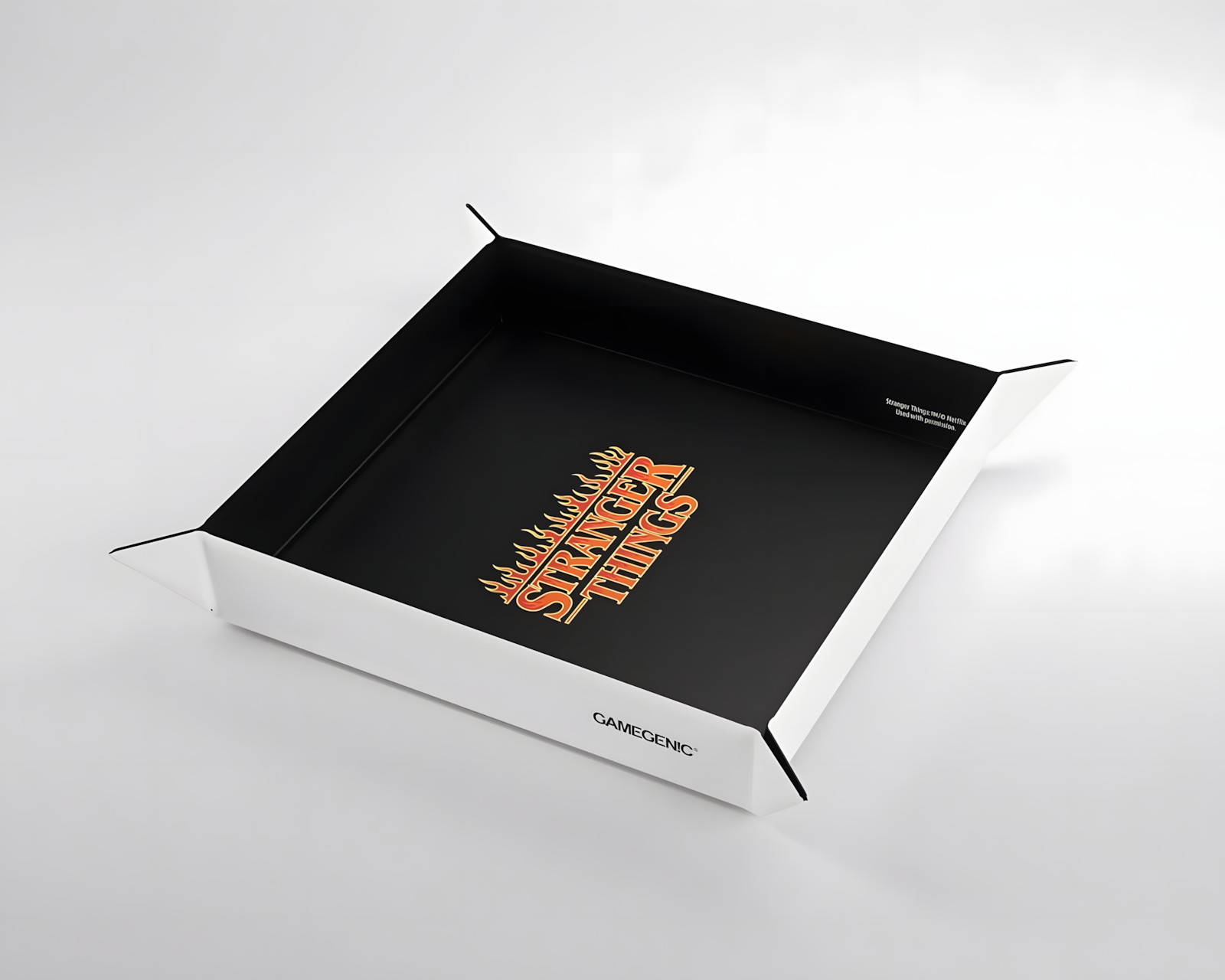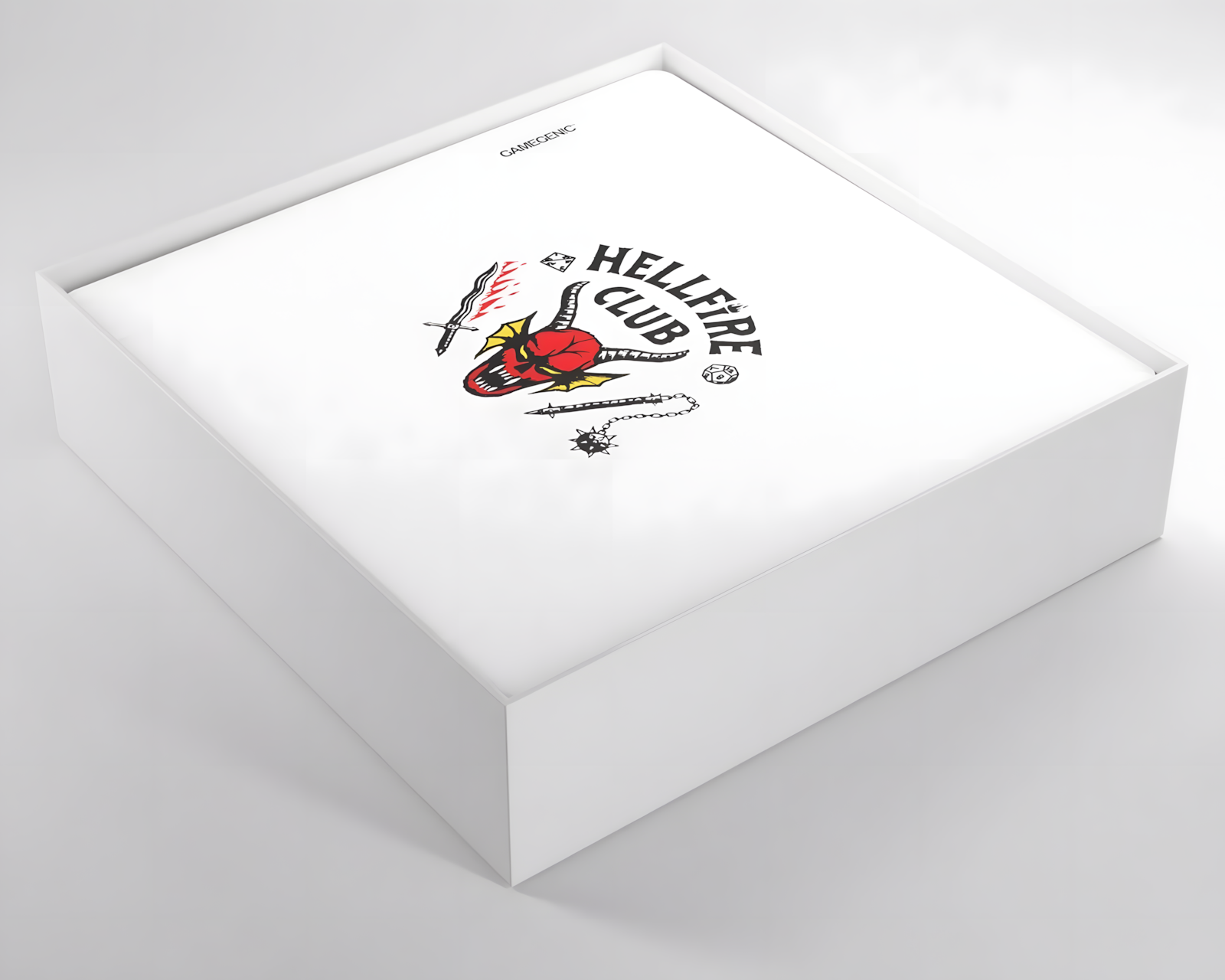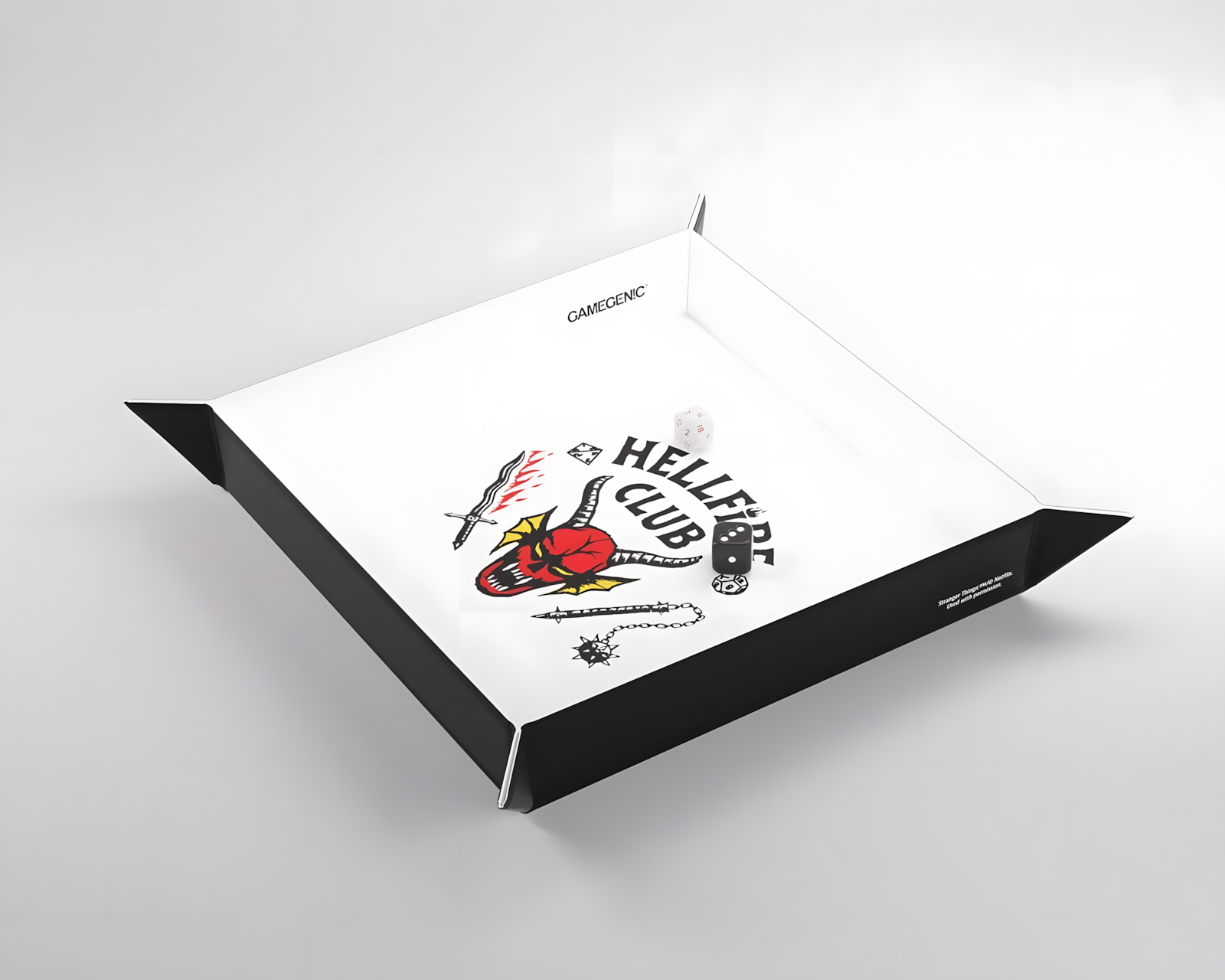 HELLFIRE CLUB Magnetisk Tärningsbricka är en fyrkantig tärningsbricka från Hellfire Club. Den är tillverkad av polyuretan och har en storlek på 269 x 269 mm när den är platt och 210 x 210 mm när den är hopvikt. Tärningsbrickan erbjuder en högkvalitativ konstruktion med två olika designer, vilket gör den helt vändbar. Den är optimerad för att passa en mängd olika standard spelboxar, vilket gör den till en användbar tillbehör för gamers. Brickan kan snabbt förvandlas från ett platt läge till en tärningsbricka, utan behov av klämmor eller kardborrefästen, vilket skyddar speldelarna under förvaring.Hela baksidan ligger helt platt, vilket ger enkel lagring. Tärningsbrickan är utrustad med kraftfulla magneter som är tillräckligt starka för att hålla tärningar av tung metall på plats. Denna funktion säkerställer att tärningarna förblir på plats under spel och transport. Med en enkel vridning kan användaren växla mellan två visuella upplevelser, vilket berikar spelstunden.