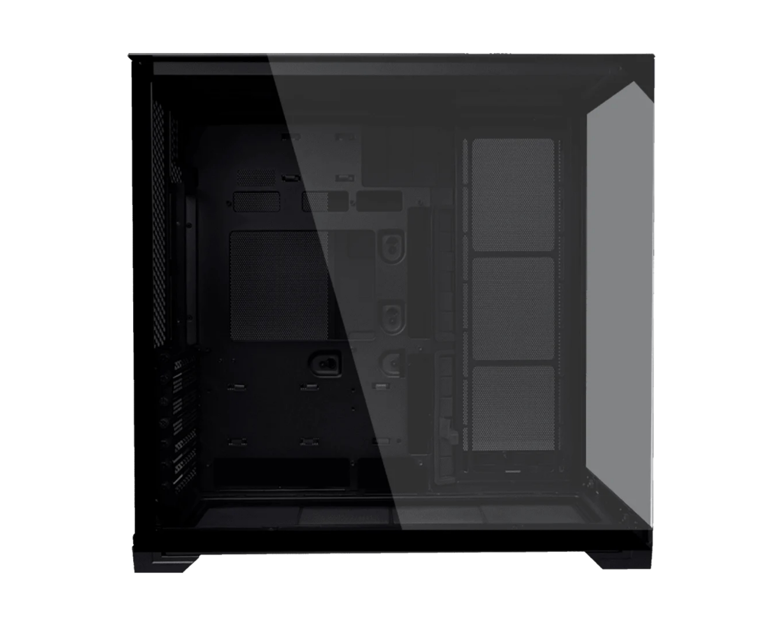 O11 Vision Compact är ett chassi från Lian Li som kombinerar mindre dimensioner med stor kapacitet för gaminghårdvara. Med måtten 446.4mm x 287.5mm x 447.5mm (HxWxD) och en intern volym på 57.4L, erbjuder det plats för processorkylare upp till 167mm och grafikkort upp till 408mm. Chassit är utrustat med stöd för upp till fjorton fläktar och flera radiatorer, vilket möjliggör en effektiv kylning för gamer-system.Chassit är byggt med tre paneler av härdat glas, vilket ger en tydlig vy av innehållet. Front- och sidopanelerna har en svag ton, medan den övre panelen kan bytas ut mot en meshpanel för bättre ventilation. Den innovativa lås- och nyckelsystemet säkerställer att panelerna hålls på plats utan stödpelare. O11 Vision Compact stöder dolda kabelanslutningar och har omfattande alternativ för kabelhantering.