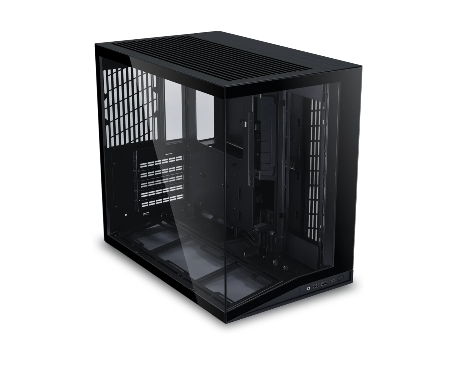 O11D Mini V2 är ett chassi från Lian Li som erbjuder ett kompakt designutrymme för högpresterande gaming-hårdvara. Trots sin mindre storlek har det en rymlig interiör vilket möjliggör installation av kraftfulla komponenter och anpassning för luft- eller vattenkylning, inklusive vertikal montering av grafikkort. Chassit riktar sig främst till gamers som söker en estetiskt tilltalande och funktionell lösning för sin PC-byggnad.Detta chassi är konstruerat med sidopaneler av härdat glas som låter användare visa sina komponenter. Lian Li O11D Mini V2 har ett genomtänkt kabelhanteringssystem, inklusive kabelhållare och stöd för moderkort med back-connect-design. Det stödjer moderkort med Mini-ITX, mATX och ATX-formfaktorer. Chassit medger upp till nio fläktar och har plats för två vattenkylningsradiatorer, vilket säkerställer effektiv kylning även under hög belastning. Mesh-paneler och flänsar för dammskydd bidrar till en renare inre miljö.