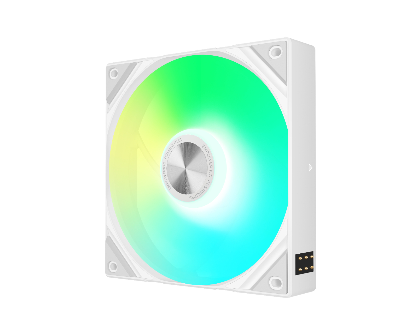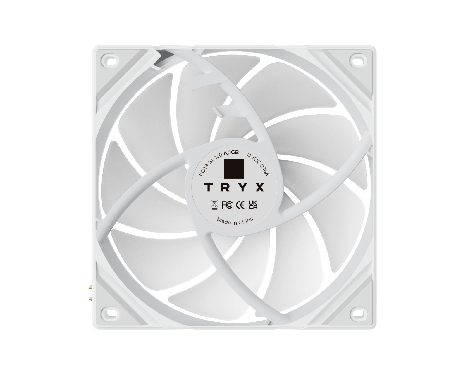 ROTA SL ARGB 120mm är en chassifläkt från TRYX som erbjuder effektiv luftflöde och anpassningsbar belysning. Fläkten har en inbyggd Gen2 ARGB-belysning som kan skräddarsys för att skapa visuella ljusshower i ett PC-kabinett. Med standardmåttet 120x120x25 mm och en maximal rotationshastighet på 1850 RPM, är den adekvat för olika typer av datorbyggen. Ljudnivån hålls under 28.87 dB(A) även vid full belastning, vilket gör den lämplig för en tyst driftsmiljö.ROTA SL ARGB 120mm är tillverkad av koppar, metall och polybutylen-tereftalat, vilket bidrar till en stabil byggkvalitet och lång hållbarhet. Fläkten använder sig av en magnetisk kontaktlösning med pogo-pinnar för enklare kabelhantering och daisy chaining. För att minimera vibrationen är fläkten utrustad med fyra ljuddämpande kuddar. Med ett statiskt tryck på 2.49 mmAq och ett luftflöde på 65.64 CFM, säkerställer denna fläkt effektiv kylning av olika komponenter i de flesta standardchassin.