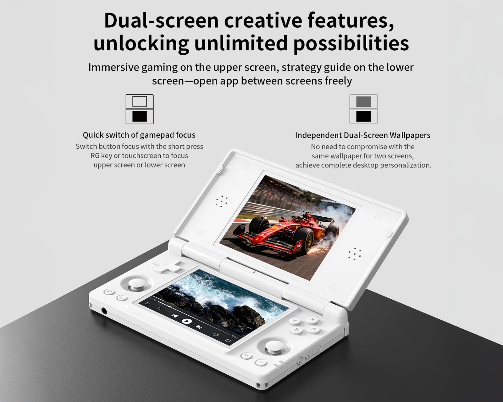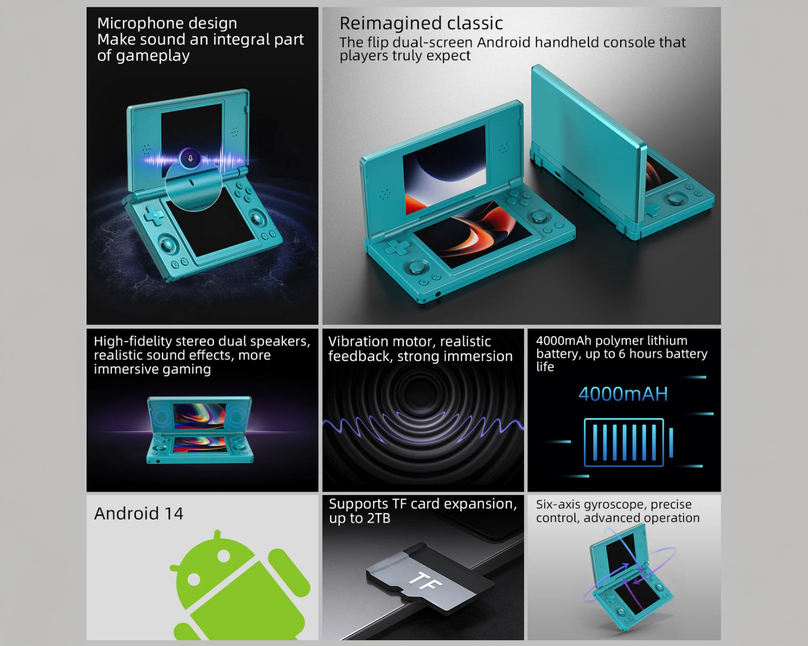 Med en RK3568-processor och 3 GB RAM erbjuder den smidig emulering av konsoler som PS1 och N64. Enheten har en solid clamshell-design och inkluderar bland annat hall-sensorer och gyro. Lagringen är på 32 GB internt och stödjer extern lagring via microSD upp till 2 TB, vilket tillhandahåller gott om utrymme för spel och applikationer.