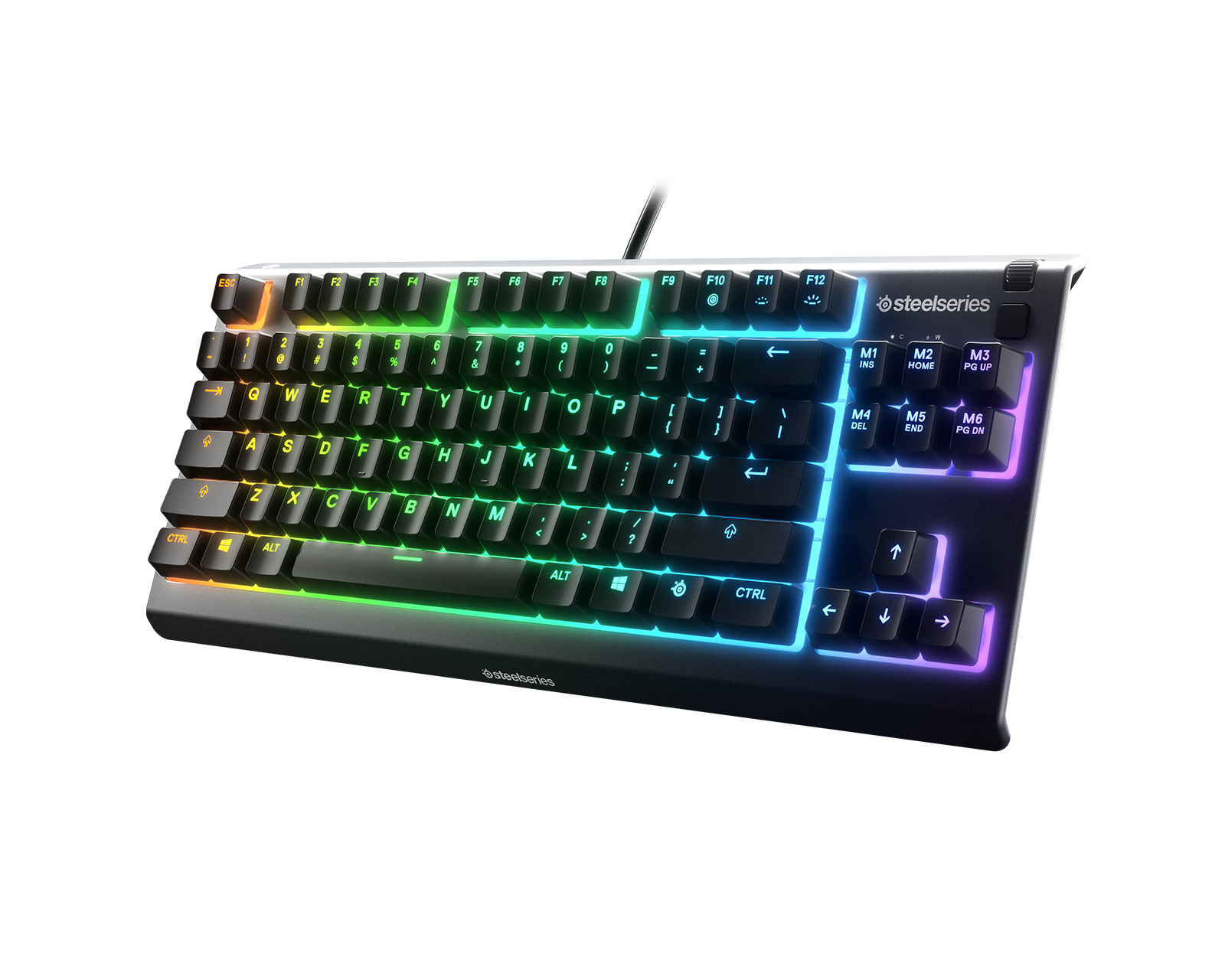 Apex 3 TKL är utformat för daglig användning med funktioner för gaming som IP32 vatten- och dammresistens för skydd mot spill och olyckor, dedikerad multimediastyrning och trevägs kabeldragning.