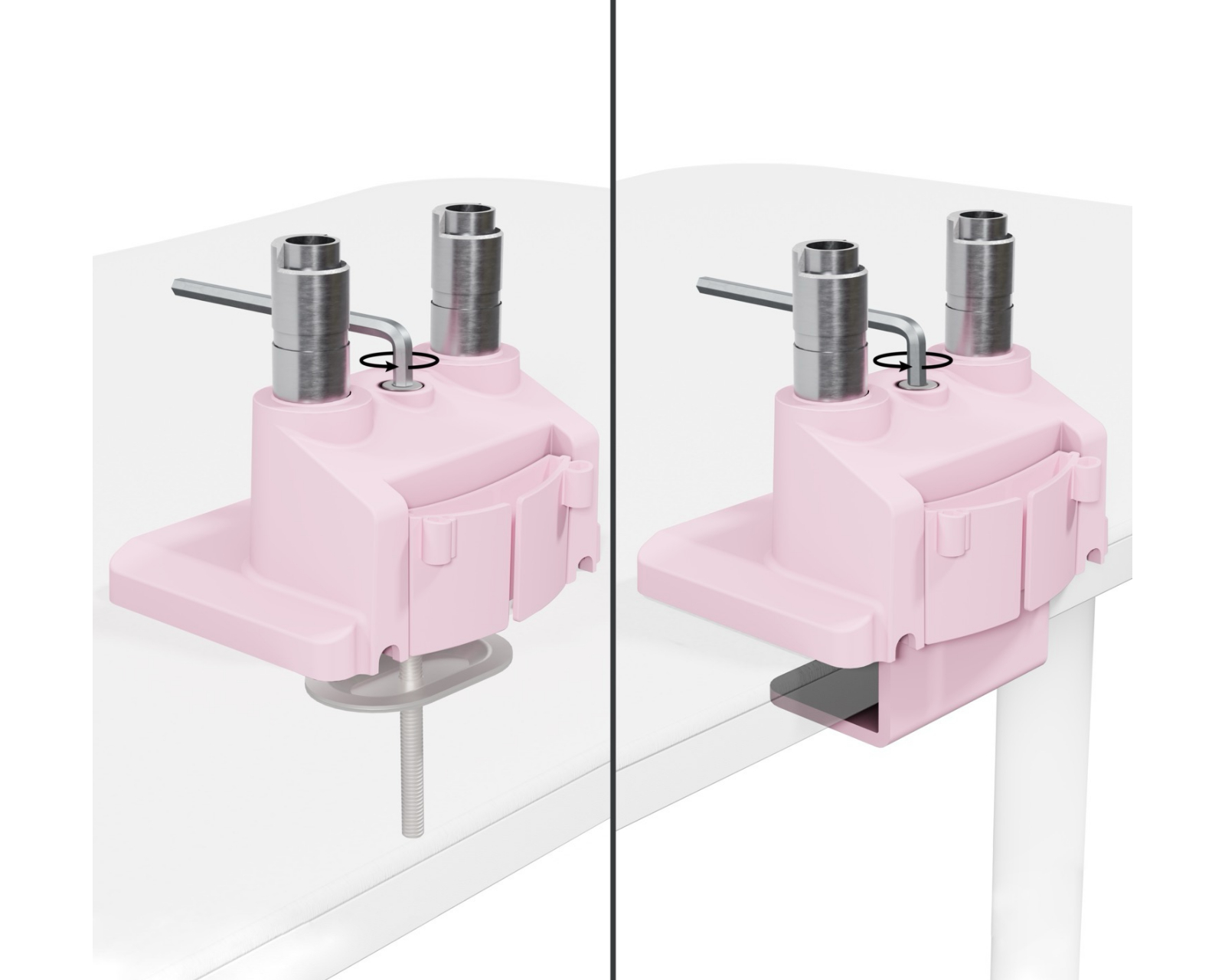 Stativet är tillverkat av stål, vilket ger det en hög byggkvalitet och stabilitet. Montering sker enkelt via klämma som fästs på skrivbordet, och det svängbara och lutande design möjliggör en justering från +90° till -90° i svängområde och en lutning på +45° till -45°. Stativen har även kabelhantering, vilket underlättar en snygg och organiserad installation, utan synliga kablar. Rotation på 360° gör att du kan anpassa skärmarna i en position som bäst passar dina behov.