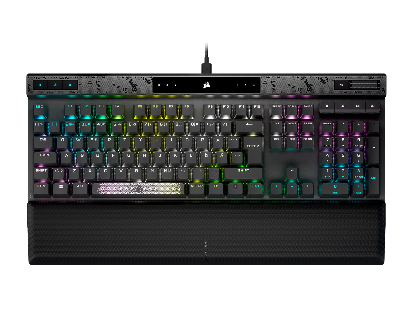 DEMO: Återköp och testexemplar. Bra skick.K70 MAX är ett premium RGB-gamingtangentbord från Corsair. Ett Full-Size tangentbord med aluminiumram och Corsairs egna magnetiska/mekaniska MGX-brytare som man kan justera aktiveringspunkten på varje enskild switch och få en helt anpassad tangentbord för spel- och skrivupplevelsen. Tillkommer ett bekvämt vadderat avtagbar magnetiskt handledsstöd gjord i memory foam. Det bästa dock är dess AXON Hyper-Processing teknik som registrerar tangenttryckningar upp till åtta gånger snabbare än på vanliga gamingtangentbord, vilket kommer göra en oslagbar!