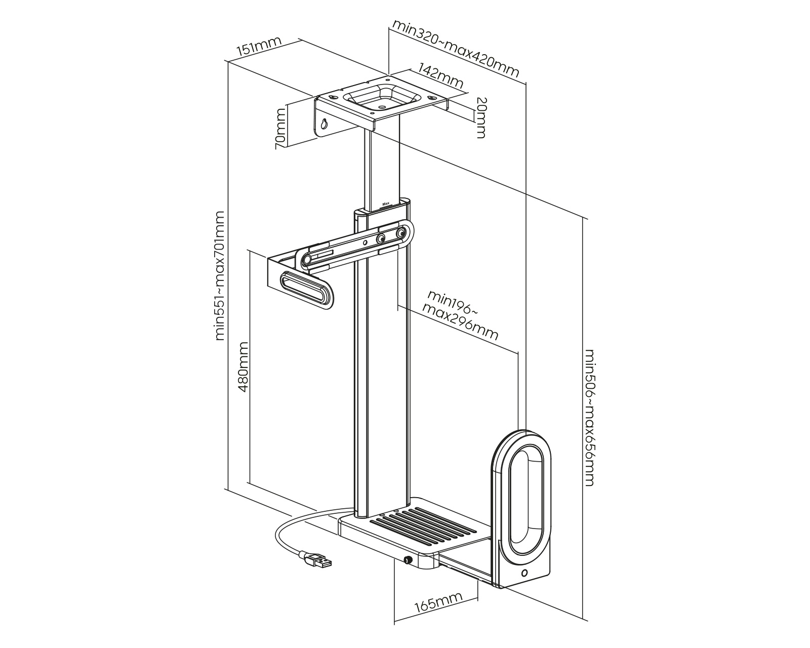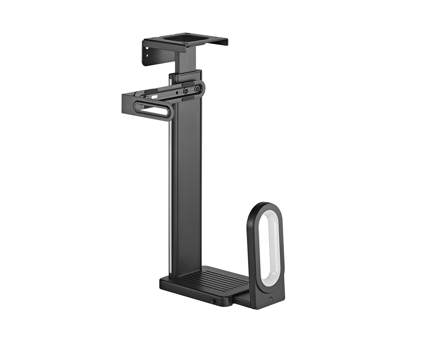 DEMO: Återköp och testexemplar. Bra skick.Håll ditt skrivbord organiserat med datorhållare med RGB från MaxMount. Denna hållare för dator är en nödvändig lösning för datormontering och passar både under skrivbordet och på väggen. Den här hållaren är perfekt utformad för att passa alla storlekar och former av datorer och erbjuder oslagbar flexibilitet och mångsidighet. Den justerbara bredden och längden ger en idealisk passform för alla datorer i olika storlekar, medan den steglösa höjdjusteringen garanterar optimalt läge för alla PC.