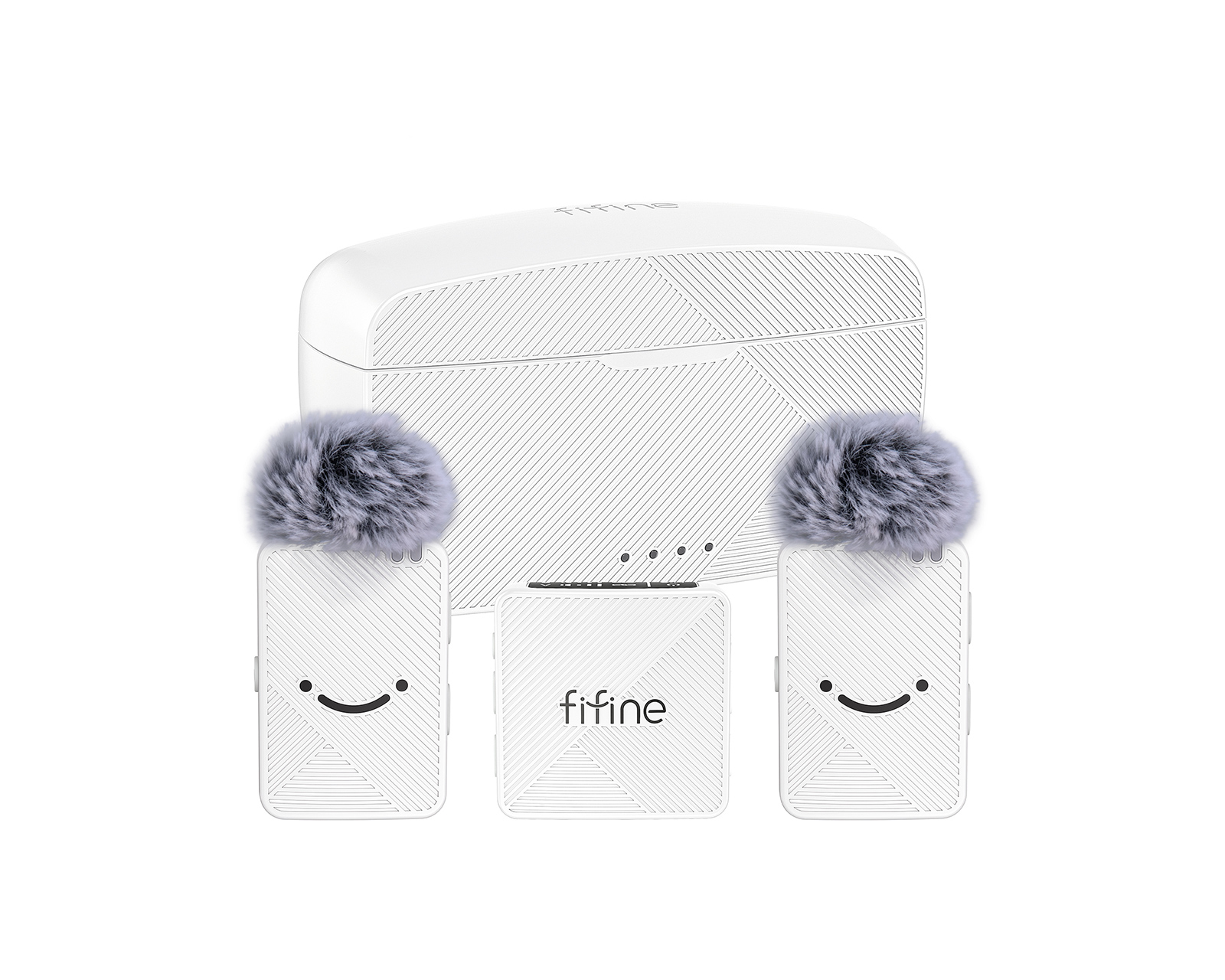 Fifine M9 Trådlösa Mikrofoner med Laddningsfodral - Vit (DEMO)