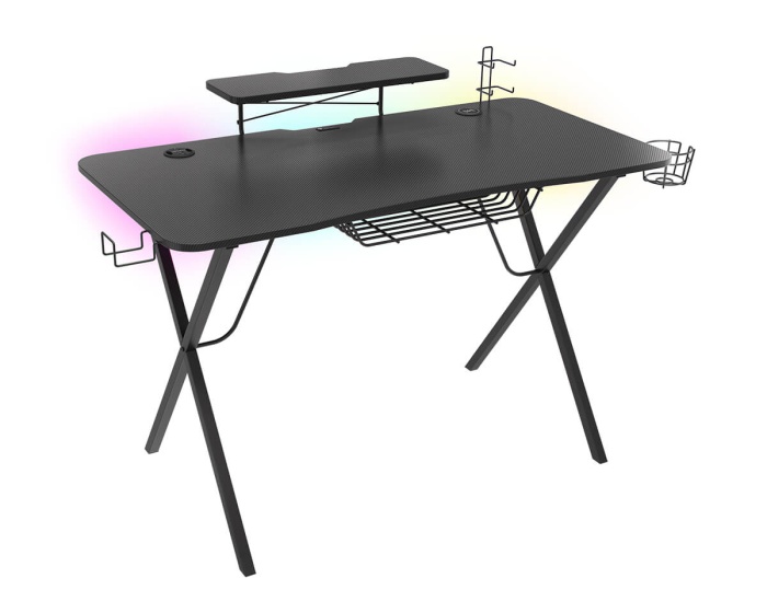 Genesis Holm 300 RGB är utrustad för alla dina nördigheter och har metalltrådhållare för dina hörlurar och handkontroller. För att överleva en hel natts spelande kan du placera din energidryck eller en kaffekopp i specialhållaren. Hållarna har universalmontering så att du kan placera dem på höger eller vänster sida, beroende på vad som passar dig bättre. För att hålla skrivbordet i god ordning finns det även ett magasinfack för att hålla ordning på kablarna på undersidan av bordet. På framsidan kan du dessutom montera ett bricka som passar bäst för dina praktiska föremål eller snacks.