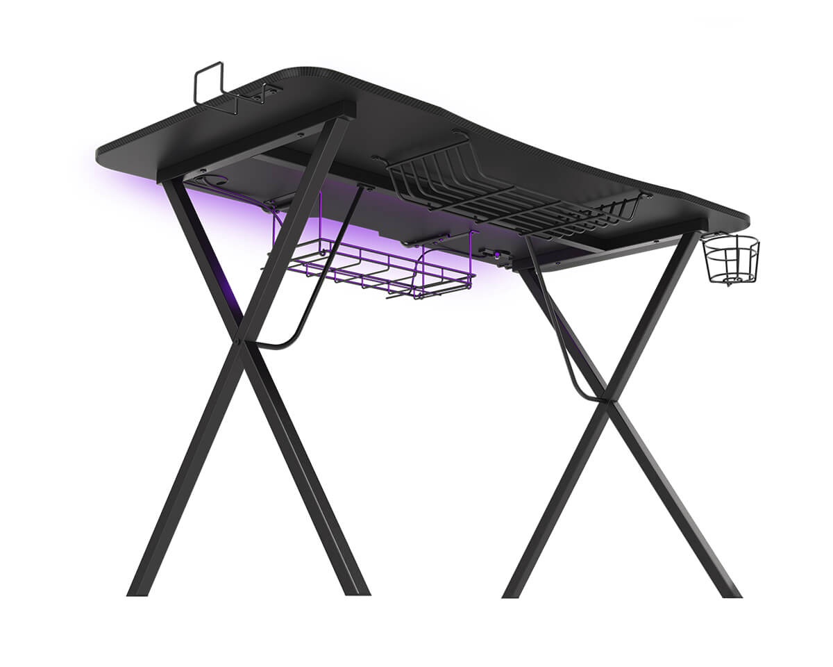 För att uppnå den bästa effekten, förbättra din spelupplevelse med den fjärrstyrda LED-bakgrundsbelysningen med flera lägen och funktioner. Fjärrkontrollen gör att du kan ändra belysningens färger, lägen, hastighet och ljusstyrka, och på så vis skapa en fantastisk och unik atmosfär som bara fantasin sätter stopp för. Bakgrundsbelysningen är placerad under skrivbordet så att den inte kolliderar med bakgrundsbelysningen från andra tillbehör.