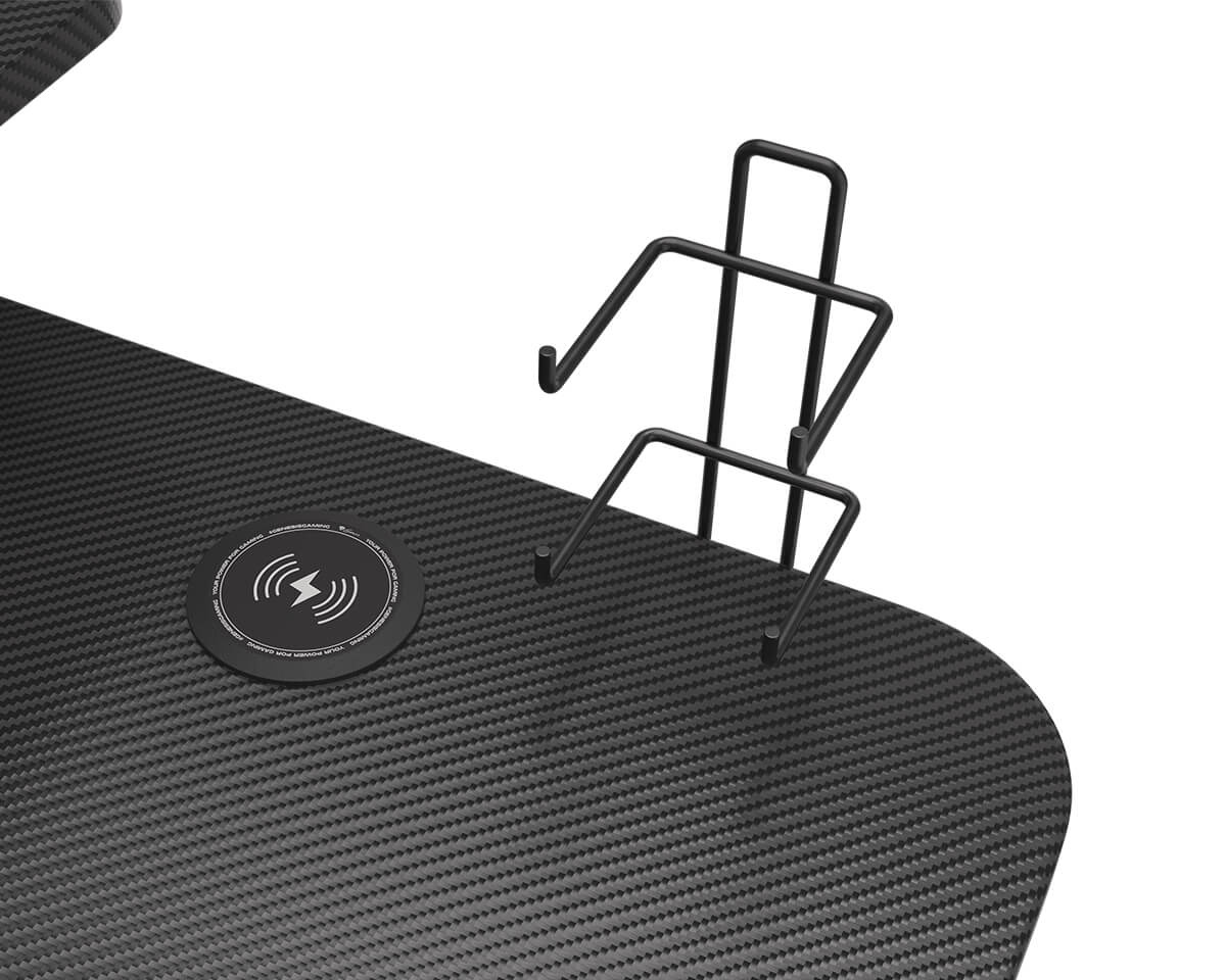 Genesis Holm 300 RGB har en inbyggd hub med tre USB 3.0-portar och kabelhantering, vilket gör det enklare att ansluta diverse kringutrustning och slippa strul bland alla kablar. Den integrerade laddaren låter dig ladda din smartphone eller liknande trådlöst, så att du alltid kan ha din mobil nära till hands.