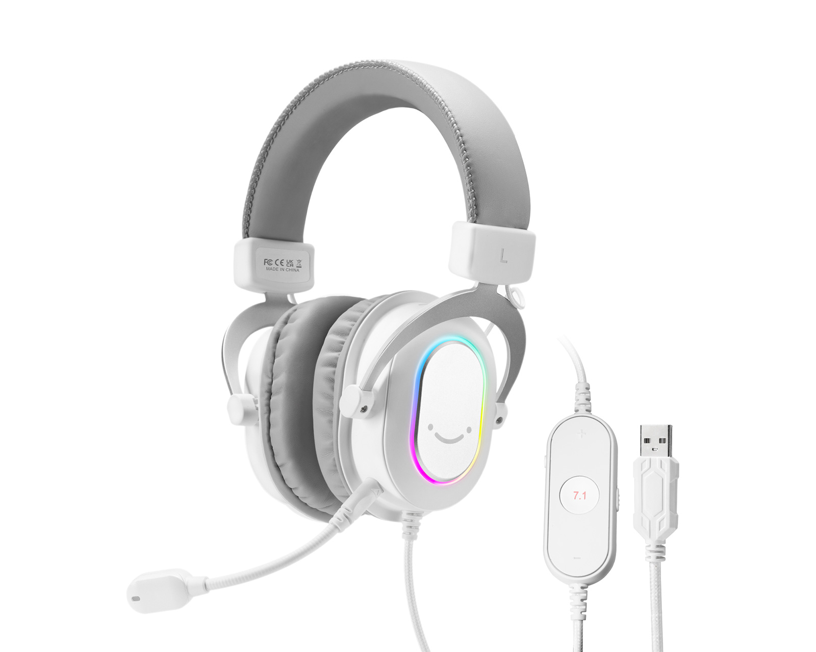 DEMO: Återköp och testexemplar. Bra skick.Fifine H6 USB Headset 7.1 Surroundljud; ett lättviktigt och bekvämt headset som passar för alla spel- och streaminguppsättningar. Detta USB- gaming headset använder 24-bitars djupt ljud för ett otroligt detaljerat ljud, vilket översätts till mer exakta ljudrepresentationer för att ge dig ett övertag på slagfältet. Tillsammans med en 330 g lättviktsdesign och ett andningsbart konstläderstöd är det här headsetet redo för många timmars användning utan att offra komfort. 7.1 surroundljud, EQ-lägen, mute-knapp och knappar för volym upp/ned så finn alla kontroller till hands inbyggda i den flätade kabeln.