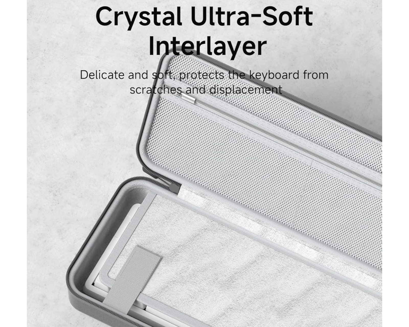 Väskan är tillverkad av EVA-material, vilket ger ett hårt yttre skydd mot droppar, repor, stötar och stötskydd mot stänk. Den inre klädseln är mjuk och skyddar mot repor, medan det genomtänkta snittet säkerställer att tillbehören hålls separerade för att undvika skador på varandra. Tyget är av 900D Oxford, vilket är slitstarkt och enkelt att rengöra. Förvaringen är designad med separata fack och ett dragkedjeskyddande nätfack för att förhindra att föremål faller ut vid öppning.