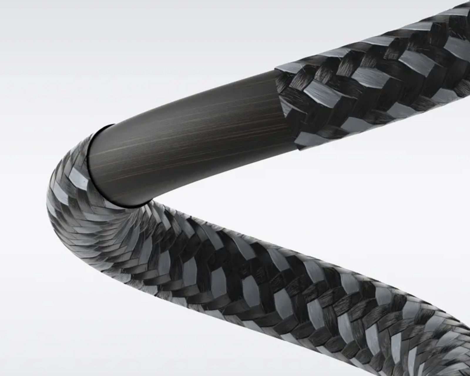 Den vävda tråden ger kabeln hög slitstyrka och motståndskraft mot sammanflätning tack vare den täta korsvävningen. Utrustad med en smart E-Marker-chip för snabb laddning som intelligent registrerar enheter och justerar ström och spänning för säker laddning, samt en mjuk och anti-interferens grafen-skärmning som har hög elektrisk ledningsförmåga.