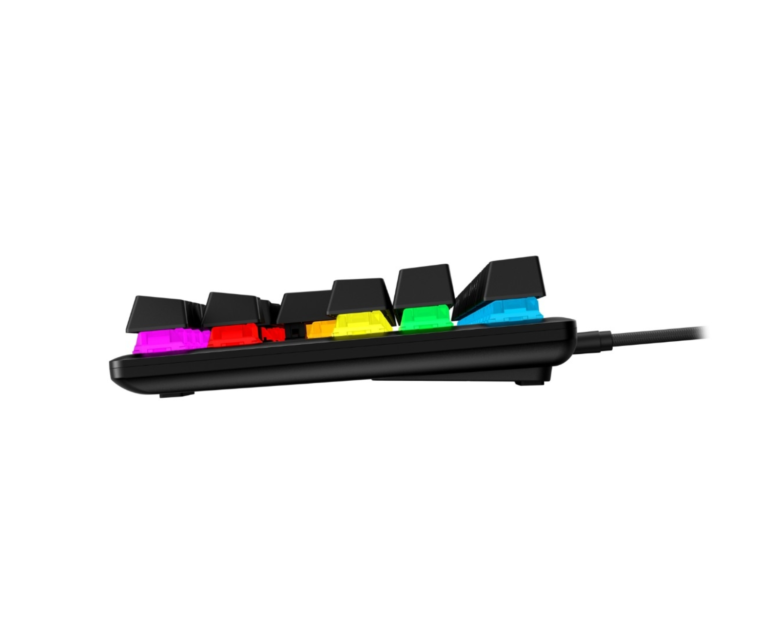 Med sina RGB-ljuseffekter går det att anpassa belysningen genom HyperX NGENUITY-programvaran. Tangentbordet stödjer n-key rollover och 100 % anti-ghosting, vilket gör att flera tangenter kan tryckas ned samtidigt utan problem. Det kan ställas in i tre olika lutningsvinklar för att passa användarens preferenser. En löstagbar USB-C-kabel underlättar transport och anslutning.