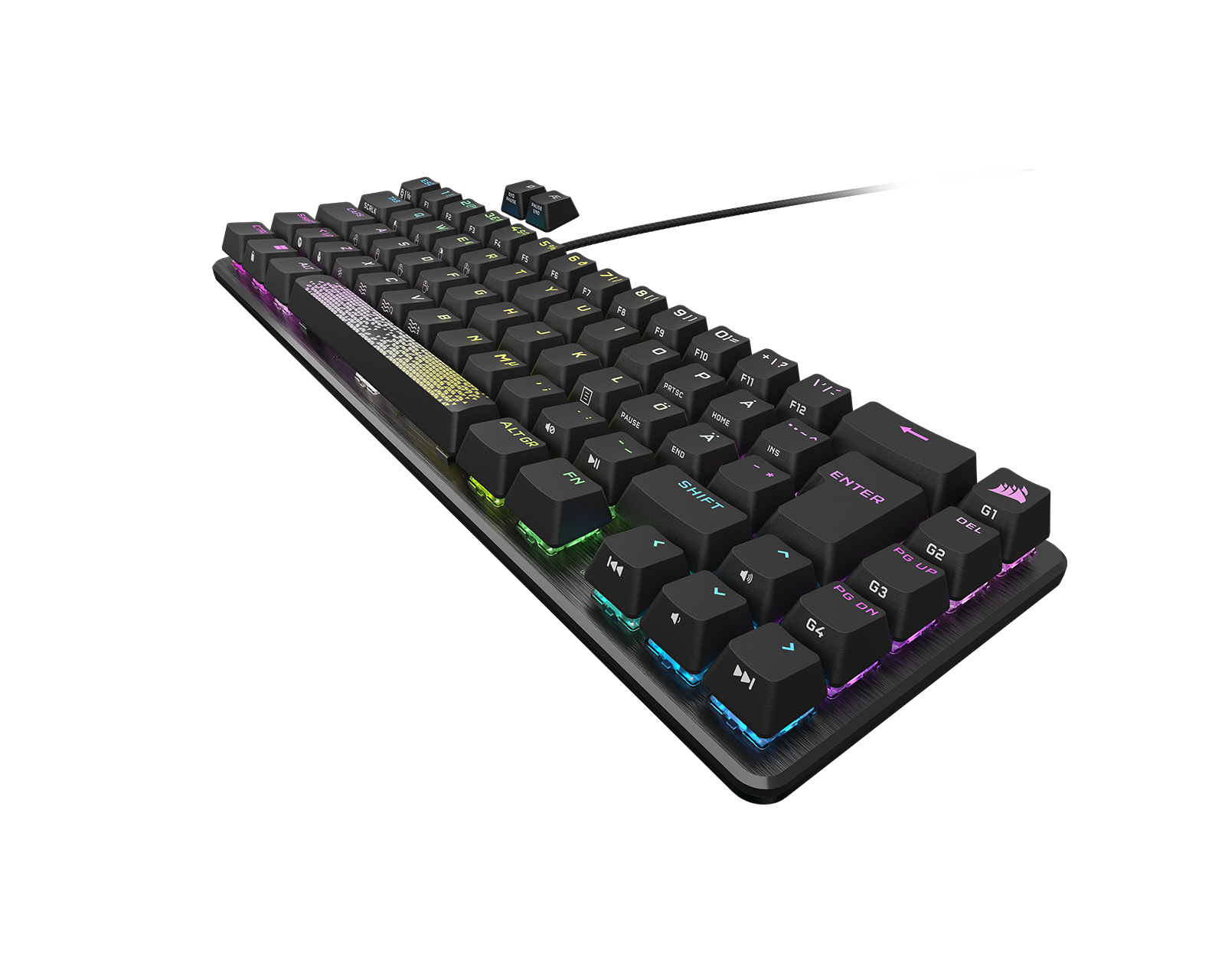 Den kompletta uppsättningen PBT double-shot keycaps ger tuffa och tåliga tangenter, medan aluminiumramen ger maximal hållbarhet och stöd. Med inbyggd makroinspelning och anpassade inställningar nära till hands har användarna dessutom full kontroll över varje tangenttryckning med bara en enhet. Alla dessa funktioner ger dig den kraft och snabbhet som behövs för att ta hem segrar.