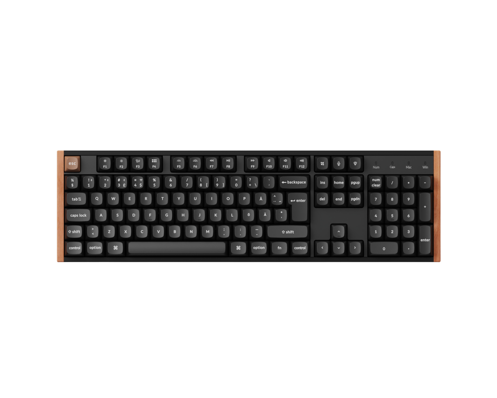 - Dubbelskott PBT keycaps för ökad hållbarhet