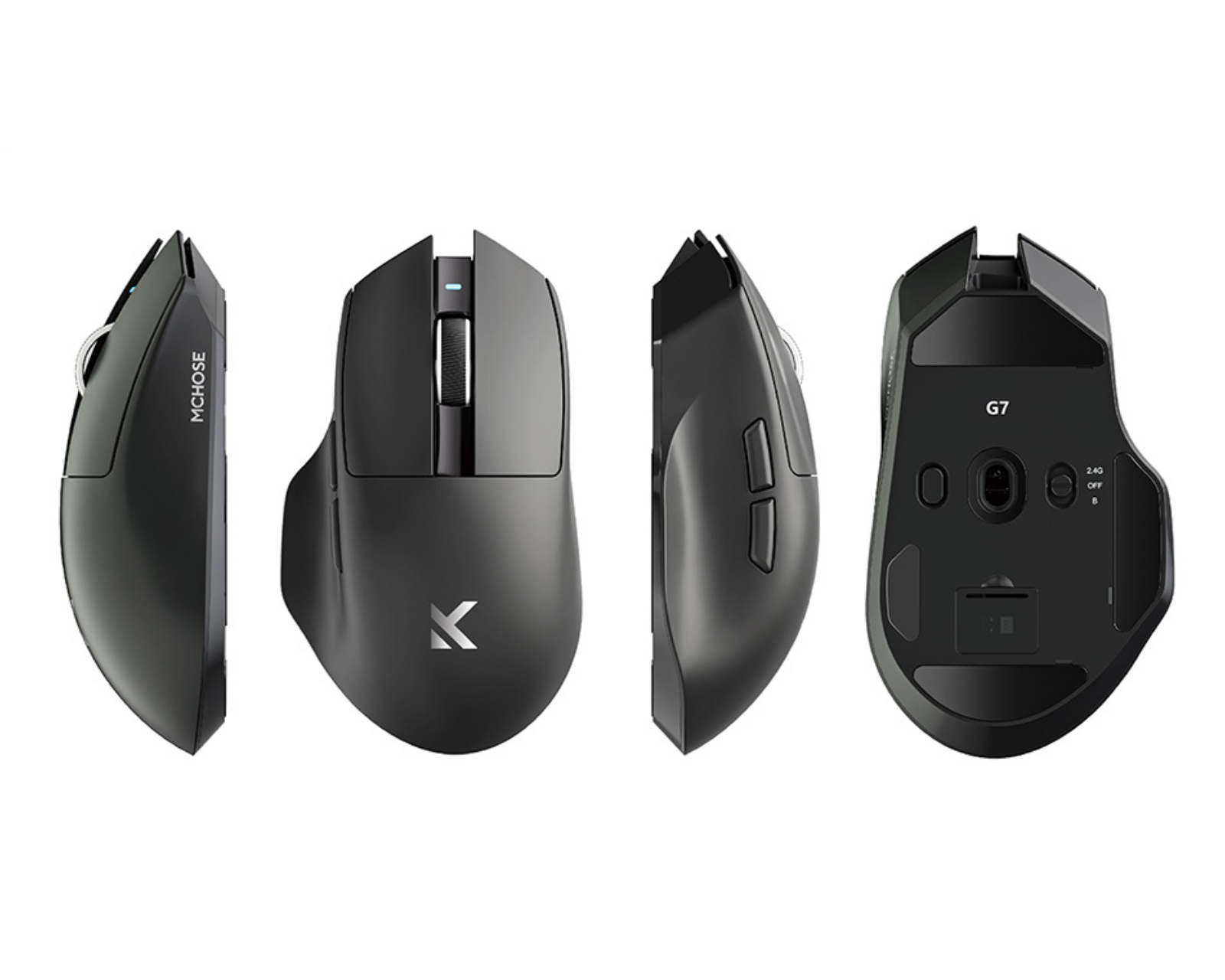 Musen är utrustad med en PixArt PAW3311 sensor och använder en optisk teknik för exakt spårning. Den är utformad med Huano Mechanical 60M switchar för lång hållbarhet och en TTC Silver encoder för smidig scrollning. Anslutningen sker via 2.4GHz, vilket säkerställer en stabil och snabb trådlös upplevelse. G7 Lättvikts Ergonomisk Mus har en batterikapacitet på 800mAh, vilket ger god driftstid mellan laddningar. Designen är enkel och stilren i svart, utan belysning, för en diskret look.