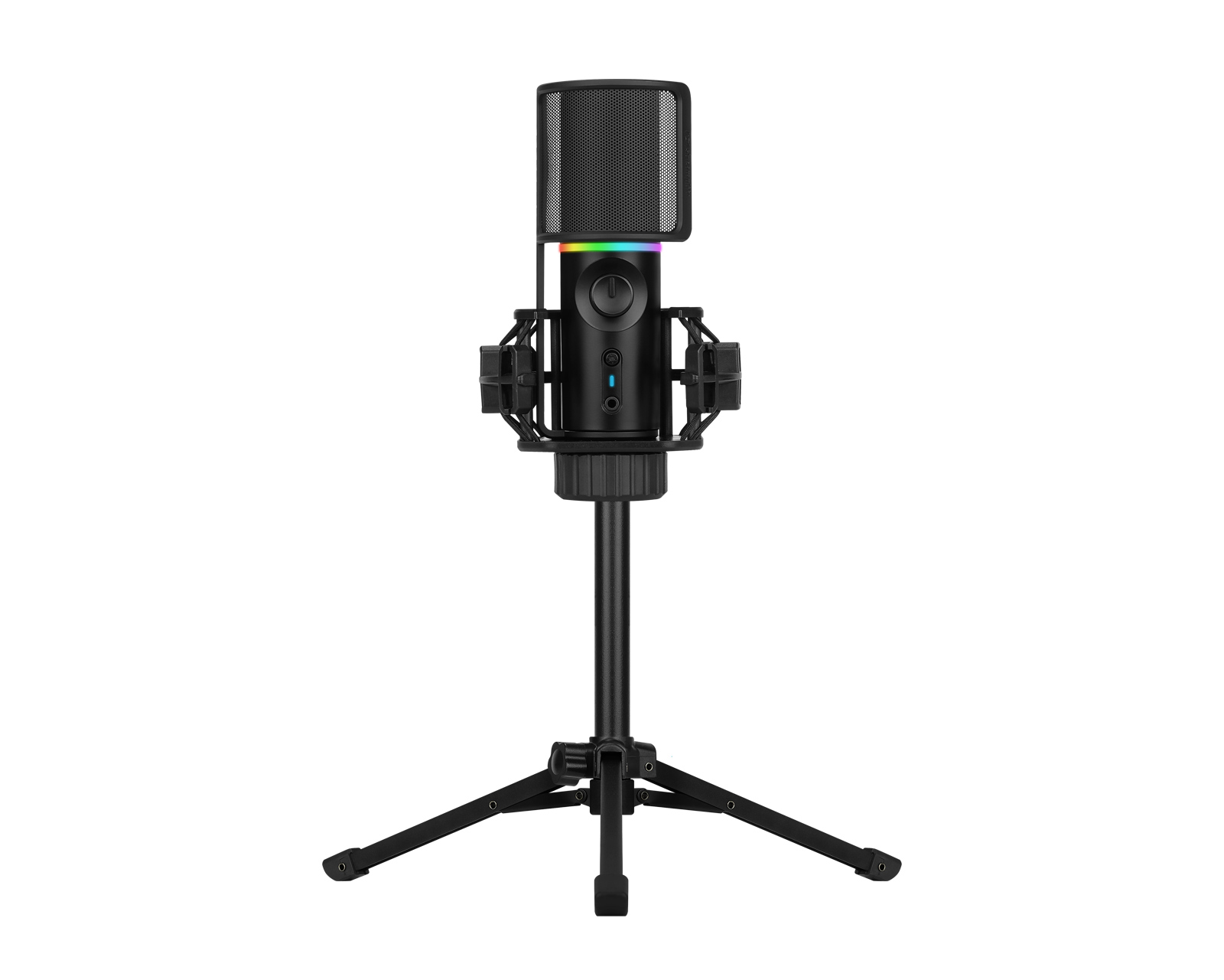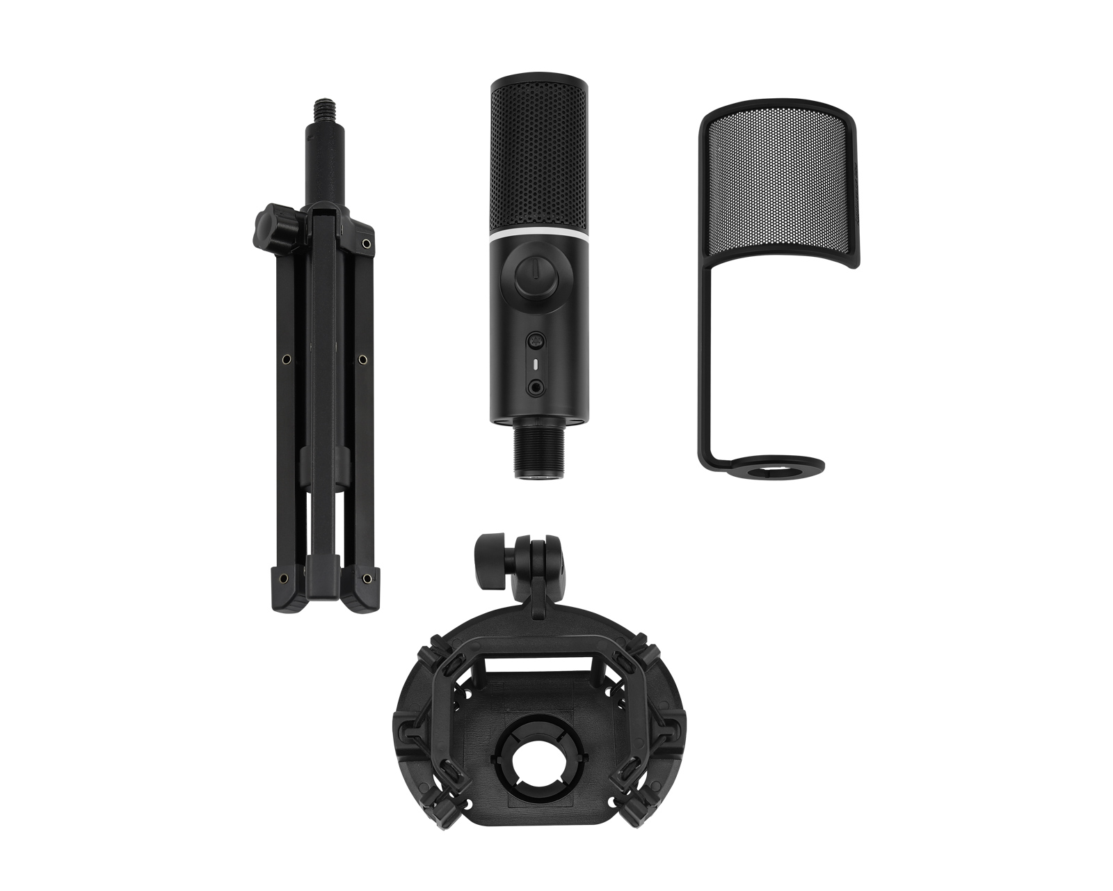 DEMO: Återköp och testexemplar. Bra skick.Mikrofon med ett lätt och stabilt hopfällbart trefotsstativ som kan justera vinkel samt rotera mikrofon för den perfekta positionen. För optimal ljudupptagningsförmåga har mikrofonen ett Kardioid riktat upptagningsmönster, vilket blockerar oönskat ljud och minskar upptagning av ljud från sidorna och bakom dig. Du kan även njuta av 2 ljuduppspelningslägen, fullt uppspelningsläge för podcast och envägs uppspelningsläge för spelande – allt för att passa dina behov oavsett vad du skapar.