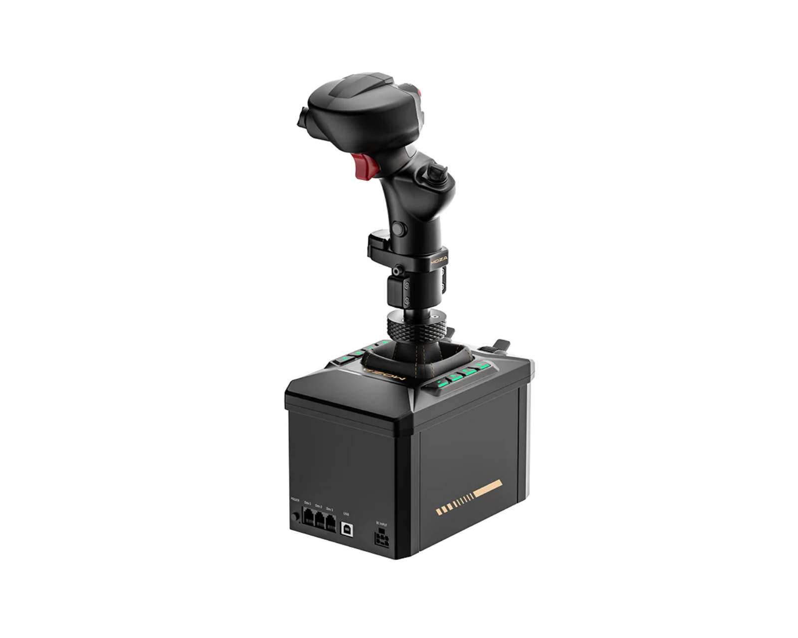 Basen i AB6 är tillverkad av aluminiumlegering och högkvalitativ stål, vilket ger en robust och hållbar konstruktion. Den är utrustad med en 15-bitars magnetisk encoder för hög precisionsspårning och har en kompakt design, vilket möjliggör flexibel installation på olika setup. Den programmerbara frontpanelen innehåller åtta knappar med anpassningsbar RGB-belysning, samt två analoga slidert för inställningar av gas, luftbroms och kamera. MHG flygspaken har en konstruktion av kolfiberförstärkt kompositmaterial, med ergonomisk design och omfattande knappkonfiguration för över 25 virtuella ingångar.