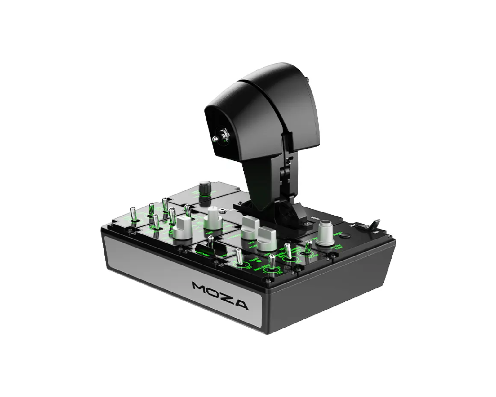 Throttlepanelen är konstruerad med en 15-bitars magnetisk encoder som säkerställer mjuk och noggrann throttlekontroll. Det justerbara detent-systemet låter användaren simulera specifika kontroller såsom efterbrännare och centrala positioner för noggrann manövrering. Viktiga komponenter inkluderar en Hall-effekt joystick, vars drift är helt utan friktion, samt vibrationsmotorer som ger feedback vid upplevelsen av aerodynamiska förändringar. Enheten väger 2,1 kg och har dimensionerna 277x194x216 mm. Vibrationer och belysning kan enkelt konfigureras via MOZA Cockpit-programvaran för att skräddarsy användarens inställningar.