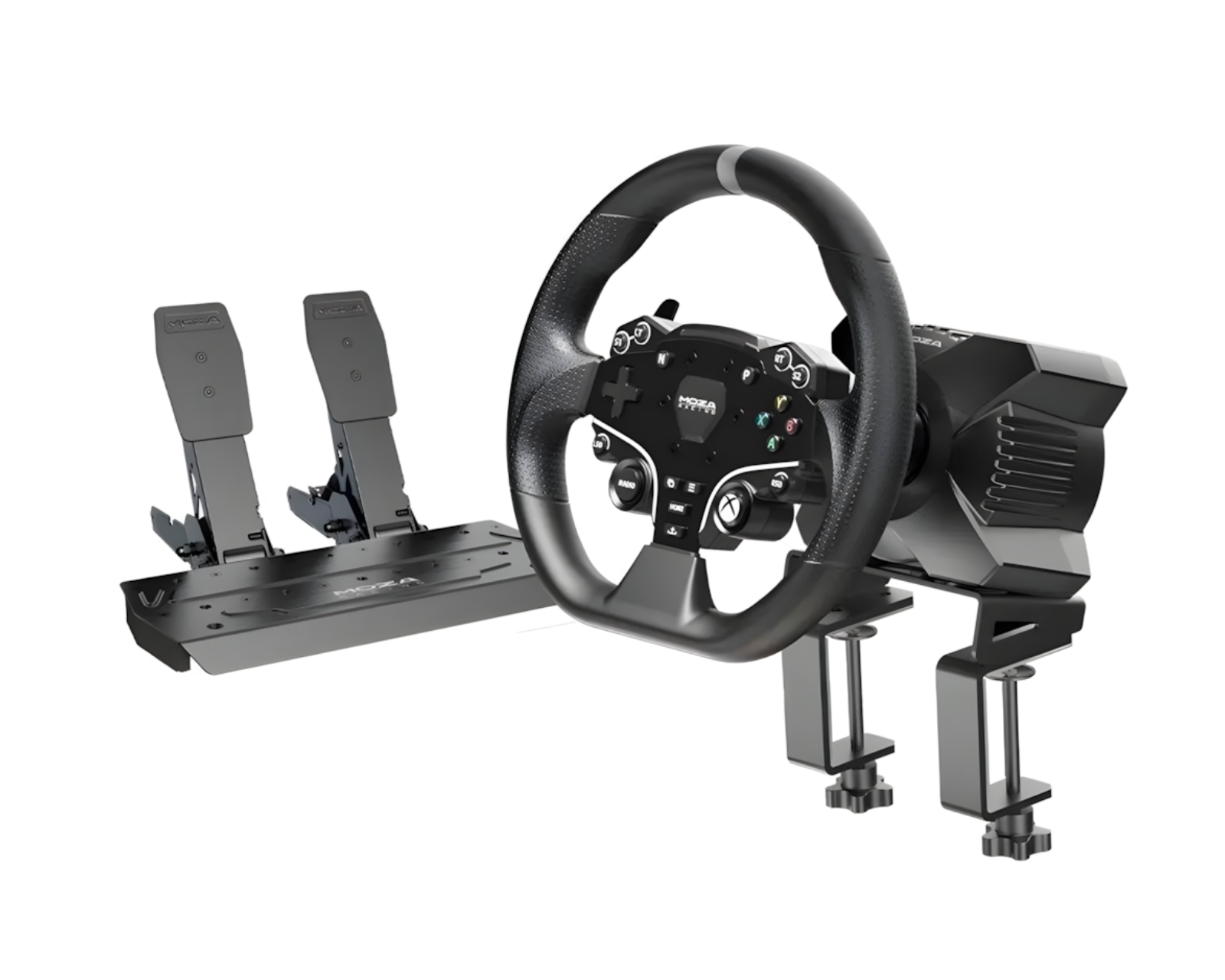 R3 Racing Wheel är byggt av flygplansklassad aluminiumlegering vilket ger hög hållbarhet och stabilitet. Med ett ergonomiskt 280 mm racingratt, vilket är lätt och mångsidigt, passar det för olika körstilar och racingtitlar. Den direktdrivna servomotorn producerar ett vridmoment på 3.9 Nm och ger detaljrik och uppslukande feedback. MOZA SR-P Lite pedaler är justerbara i avstånd för optimal komfort och ergonomi. Användaren kan även justera outputkurvan för att finna en skräddarsydd pedalkänsla som passar den egna stilen.