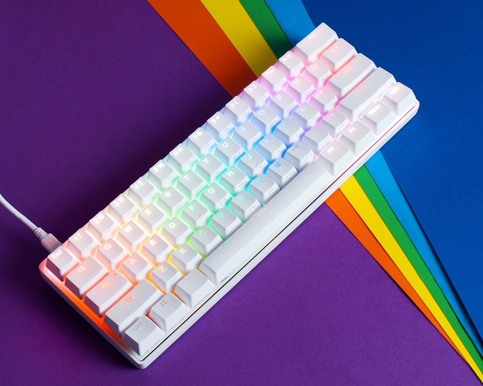 POK3R RGB är hårdvaruprogrammerbar. HÅRDVARU. Hela tangentbordet kan programmeras och varje tangent kan hålla makron utan någon form av programinstallation. Ovanpå de tre programmerbara lagren kan användarna nu konfigurera alla olika RGB-bakgrundsbelysningslägen eller ställa in enskilda tangenter i den färg de vill ha. Dessa RGB-konfigurationer sparas precis som personliga nyckelmappningar i tangentbordets eget minne. POK3R RGB: s konfiguration finns kvar när den startas, oavsett vilken dator den är ansluten till. Dessutom behöver tangentbordet ingen mjukvara för att konfigurera all denna sötma. Ingen irriterande eller laggy-leverantörsinstallation krävs! Jippie!