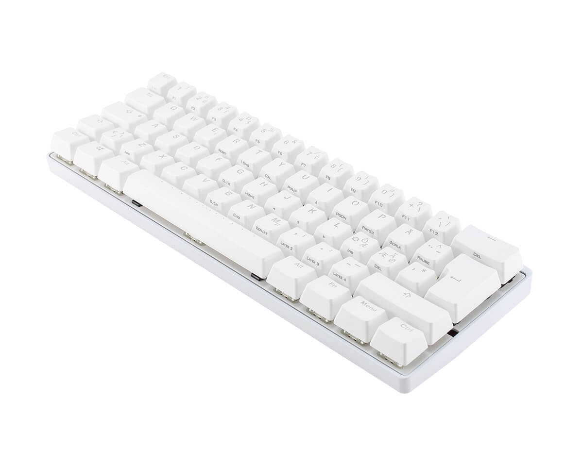 - Doubleshot ABS keycaps, vilket innebär 2 olika färger plast pressade ihop. Bokstäverna kommer inte att slitas bort ut från keycapsna