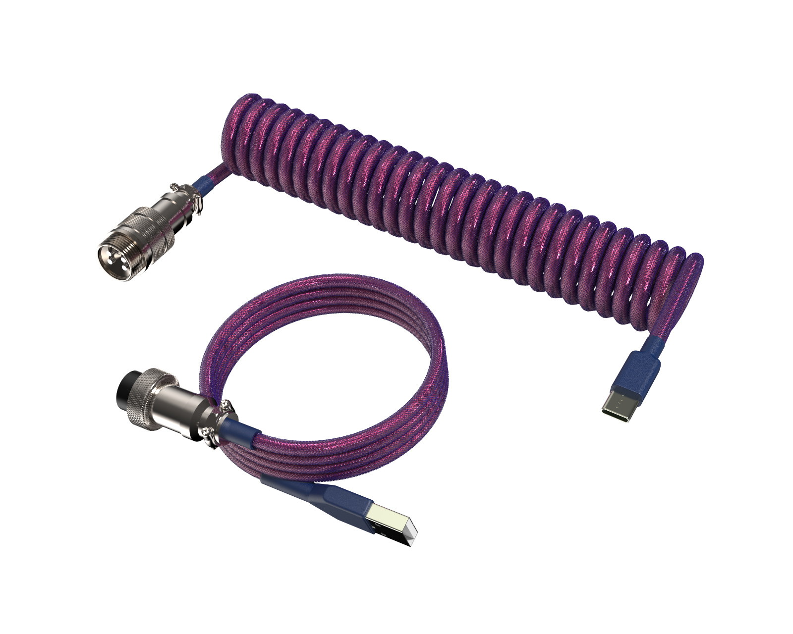 En prisvärd premium spiralkabel som är funktionell, hållbar och snygg. Kabeln passar de flesta USB-C tangentbord och USB-C uttag. Anslutning av kabeln är en 4-stifts aviator av metall. Den här robusta kontakten har en klassisk design och ger perfekt anslutning varje gång.