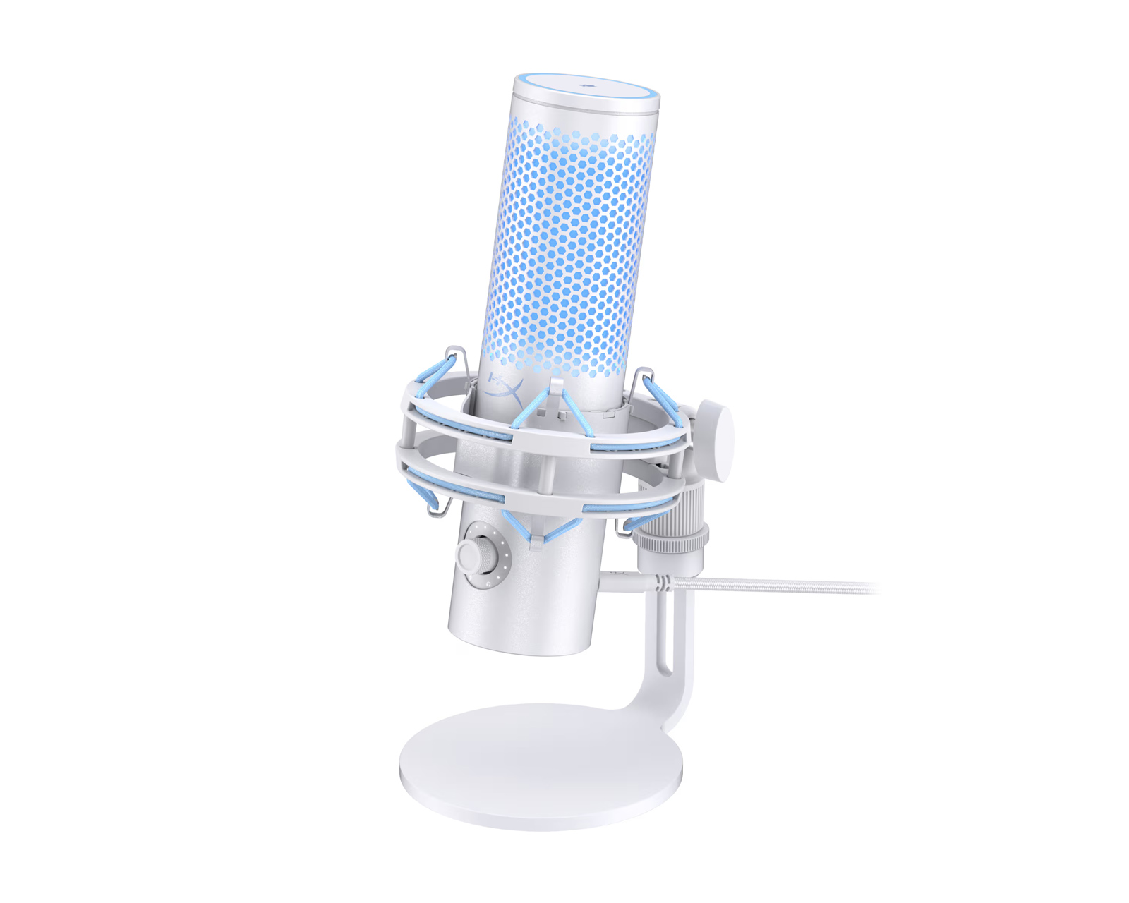 DEMO: Återköp och testexemplar. Bra skick.Uppgradera din ljudupplevelse med HyperX QuadCast 2 Frost, den perfekta mikrofonen för gamers, streamers och