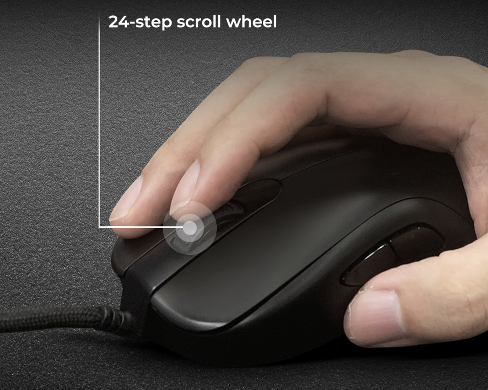 - Minskad vikt; paracordkabel; 24-stegs scrollhjul