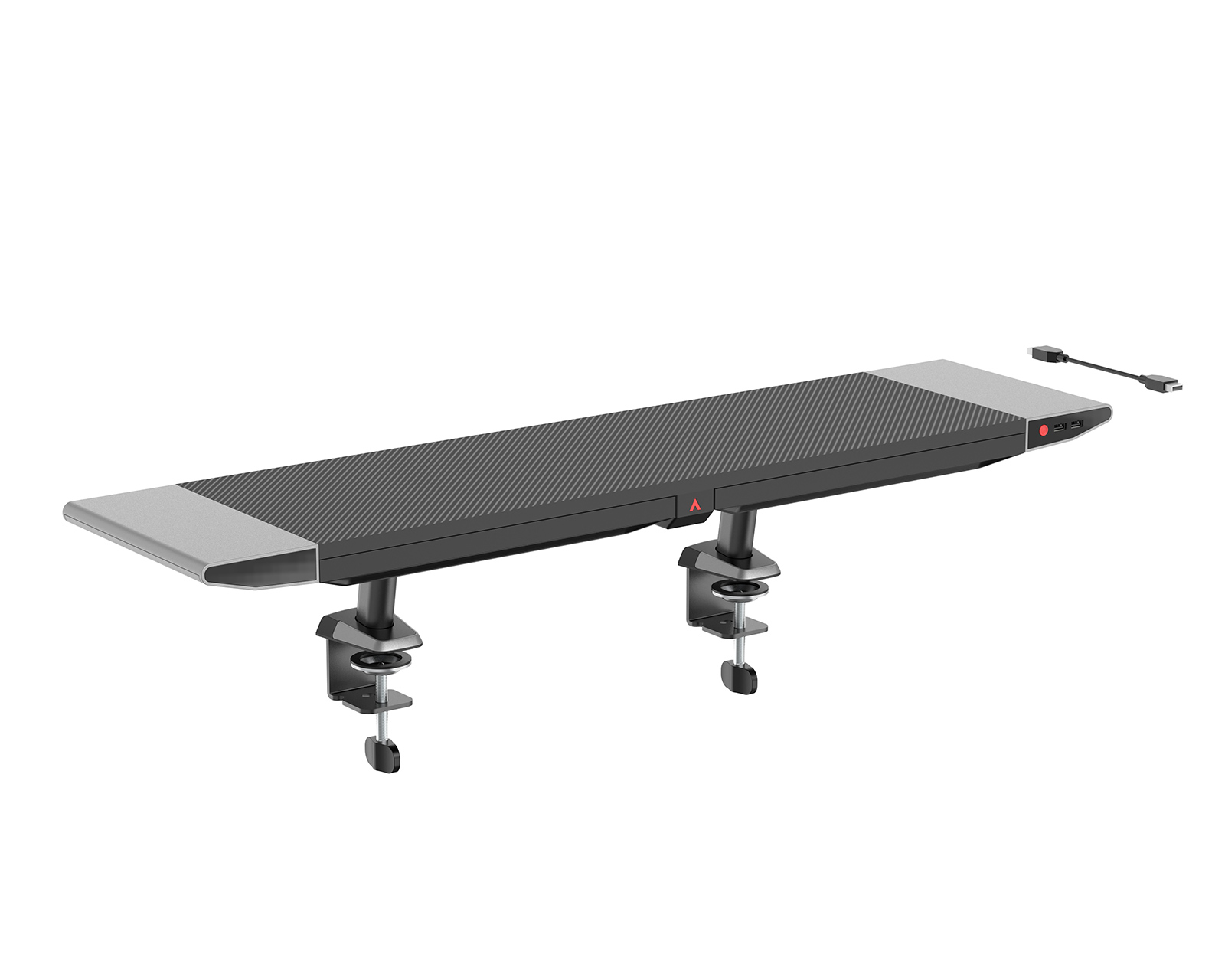 Med klämfästesen fäster sig stativet ordentligt på ditt bord och ger oöverträffad stabilitet. Säg adjö till vingliga inställningar och hej till en solid grund för din spelstation. Men det slutar inte där, monitorhöjaren har också två sidofack för alla dina små kontorstillbehör, vilket gör organisationen till en lek.