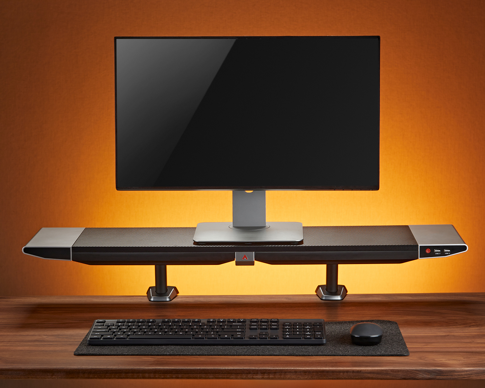 DEMO: Återköp och testexemplar. Bra skick.Kalla alla professionella gamers, det är dags att spela! Är du redo att ta din speluppsättning till nästa nivå? Då behöver du inte leta längre, för MaxMount Clamp Monitor Riser med RGB-belysning är här för att lyfta din spelupplevelse.