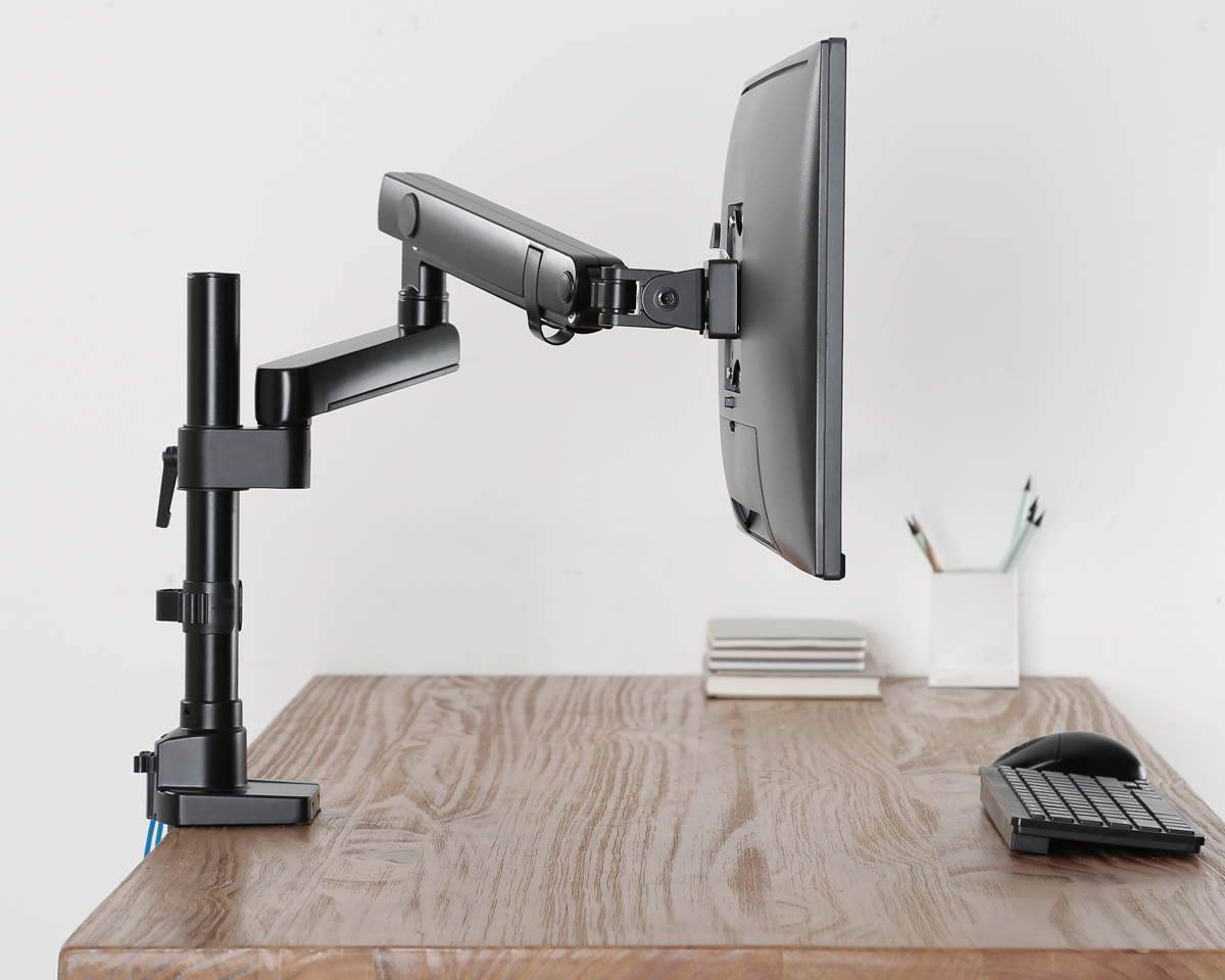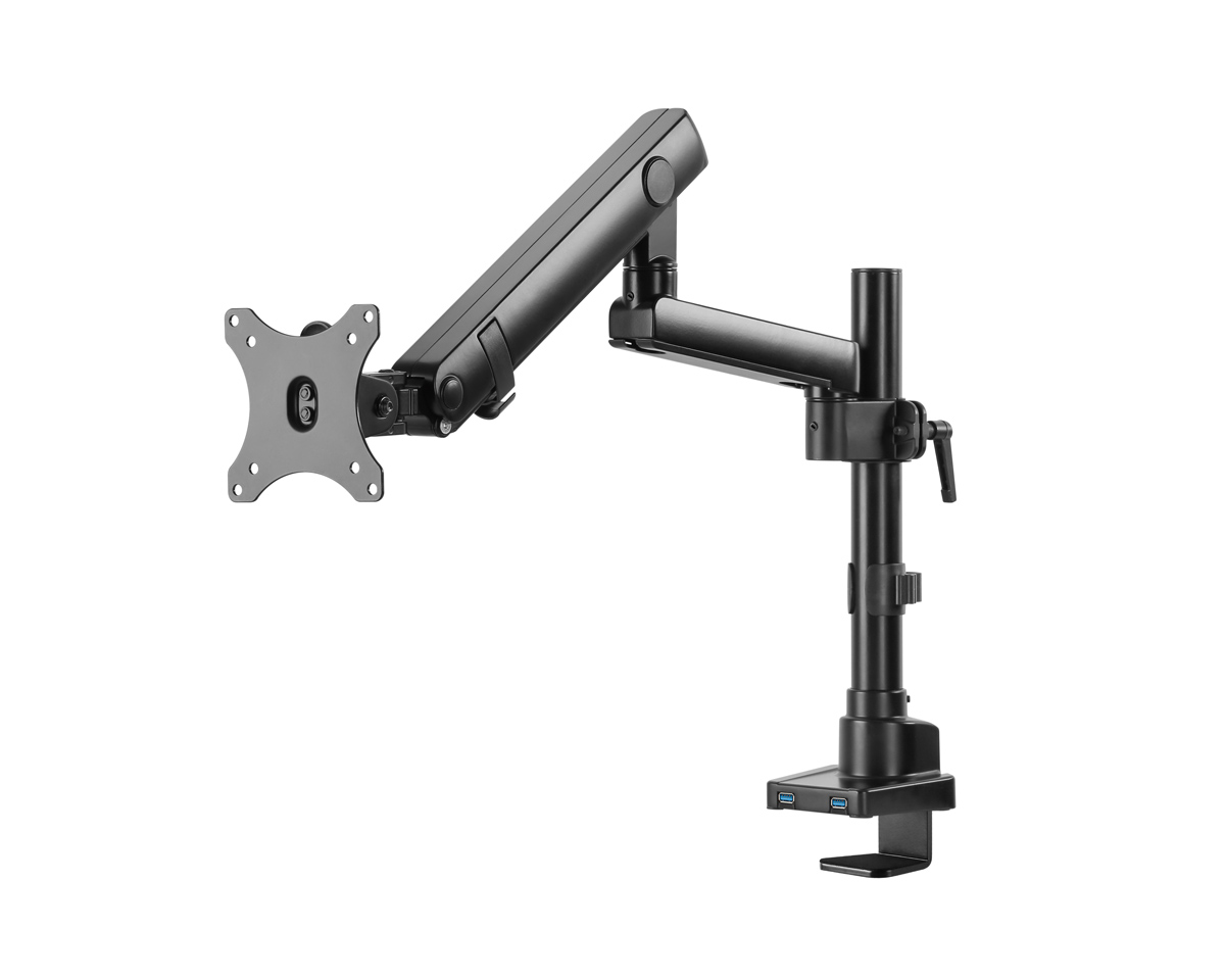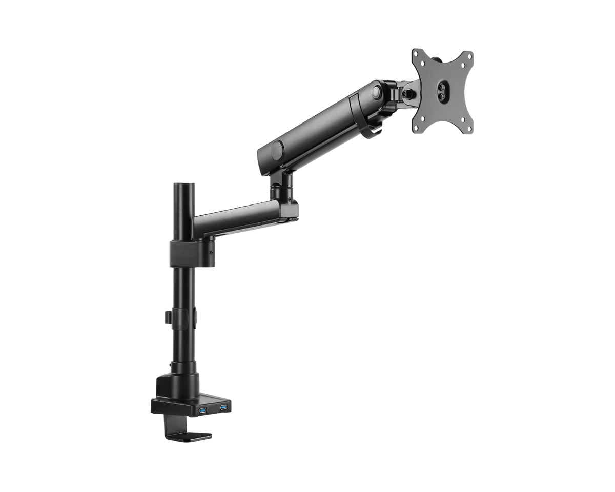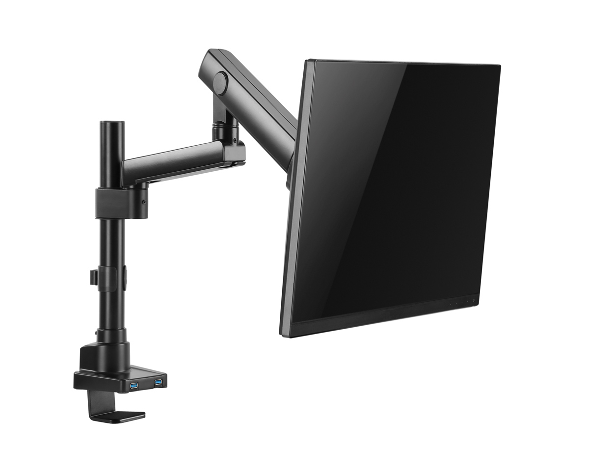 Detta skärmstativ för 1 bildskärm har en extra slimmad, minimalistisk design och frigör plats på skrivbordet med stil. Stativet kommer med dold kabelhantering och 2st USB-portar för att hålla bort allt trassel från skrivbordet.
