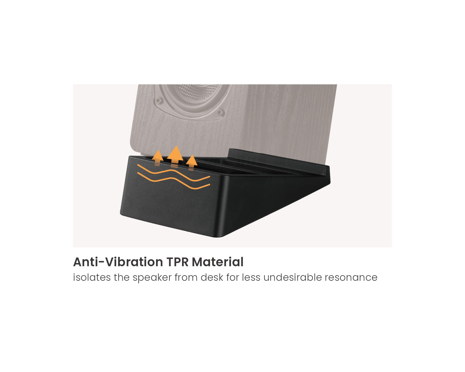 Och dessa stativ förbättrar inte bara ljudet, de minskar också oönskad resonans! Det beror på att materialet som används är vibrationsdämpande TPR - det isolerar högtalaren från skrivbordet, så att det blir minimal interferens mellan de två för mer exakt ljudåtergivning och prestanda.