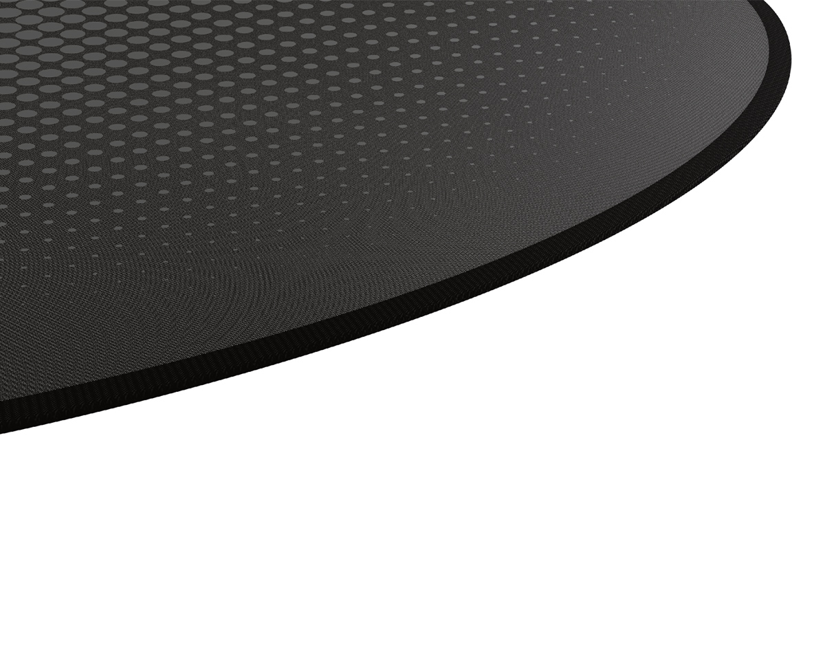Mika Golvskydd är tillverkat av ett tåligt polyester-material som är designat för att motstå slitage över tid. Den glidsäkra undersidan ser till att mattan ligger på plats, vilket ger stabilitet under användning. Med en diameter på 117 cm ger den en stor användningsyta och passar de flesta typer av kontors- och gamingstolar. Golvskyddet kan även minska ljudet från rullande stolar, vilket gör det särskilt användbart i miljöer där ljudnivån behöver hållas nere.