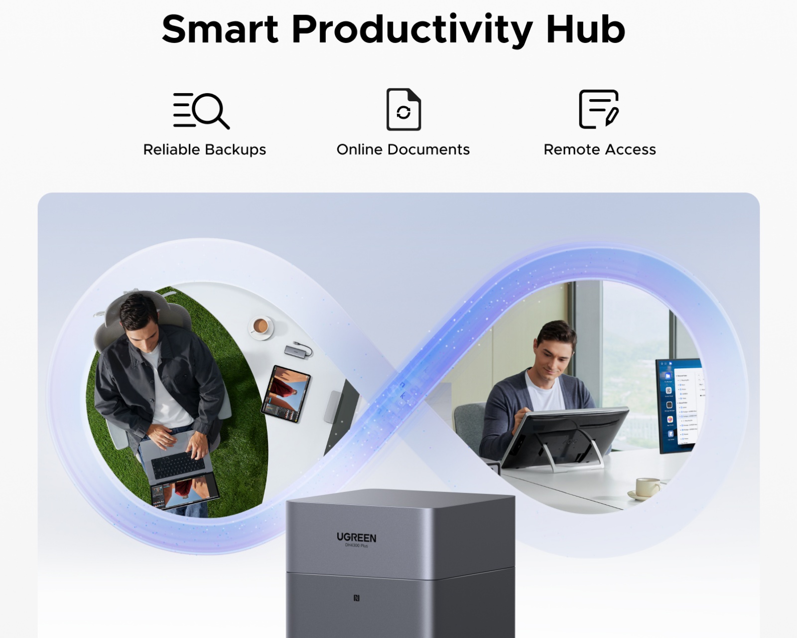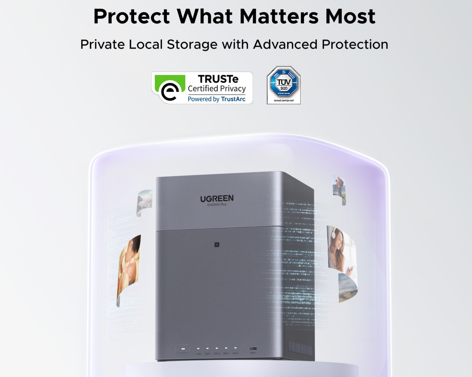 Konstruktionen av NASync DH4300 Plus kännetecknas av hög byggekvalitet och enkel installation. Enheten har plats för fyra SATA-hårddiskar och stödjer olika RAID-konfigurationer (JBOD, RAID 0, RAID 1, RAID 5, RAID 6, RAID 10). Den använder RK3588 SoC-teknologi som levererar snabba dataöverföringshastigheter, där 1 GB kan överföras på bara tre sekunder. Dessutom erbjuder den avancerad kryptering och tvåfaktorsautentisering för ökad datasäkerhet.