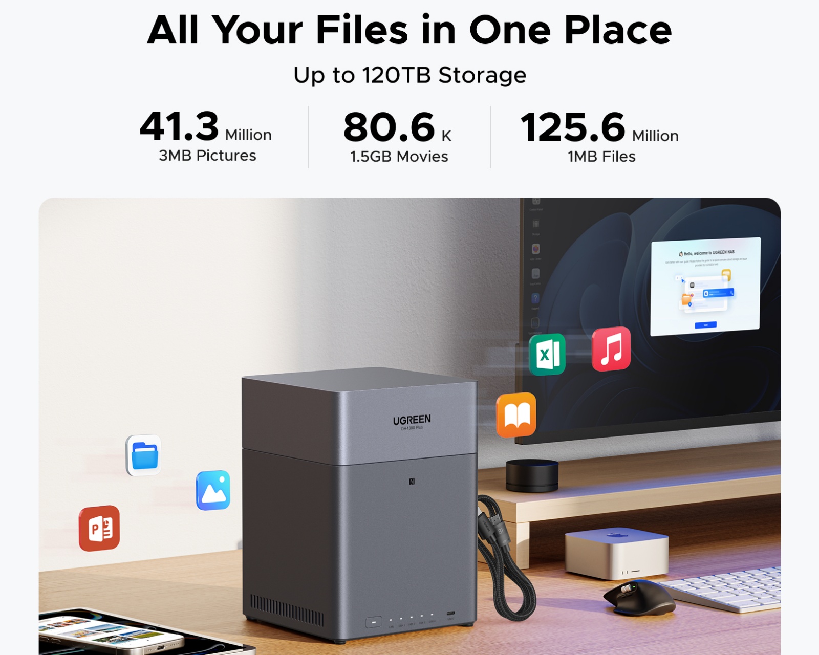 - Maximal lagringskapacitet på 120 TB