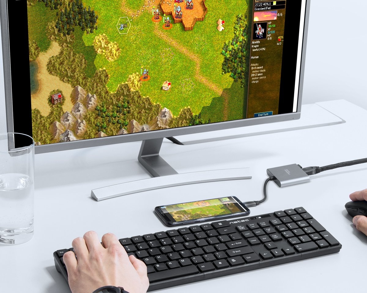 Thanks to Natec Fowler adapter, you will be able to release a full potential of your smartphone. In the case of devices supporting DEX, Huawei EMUI Desktop or PC Mode, you can connect your mouse and keyboard, and use the smartphone as the standard PC.