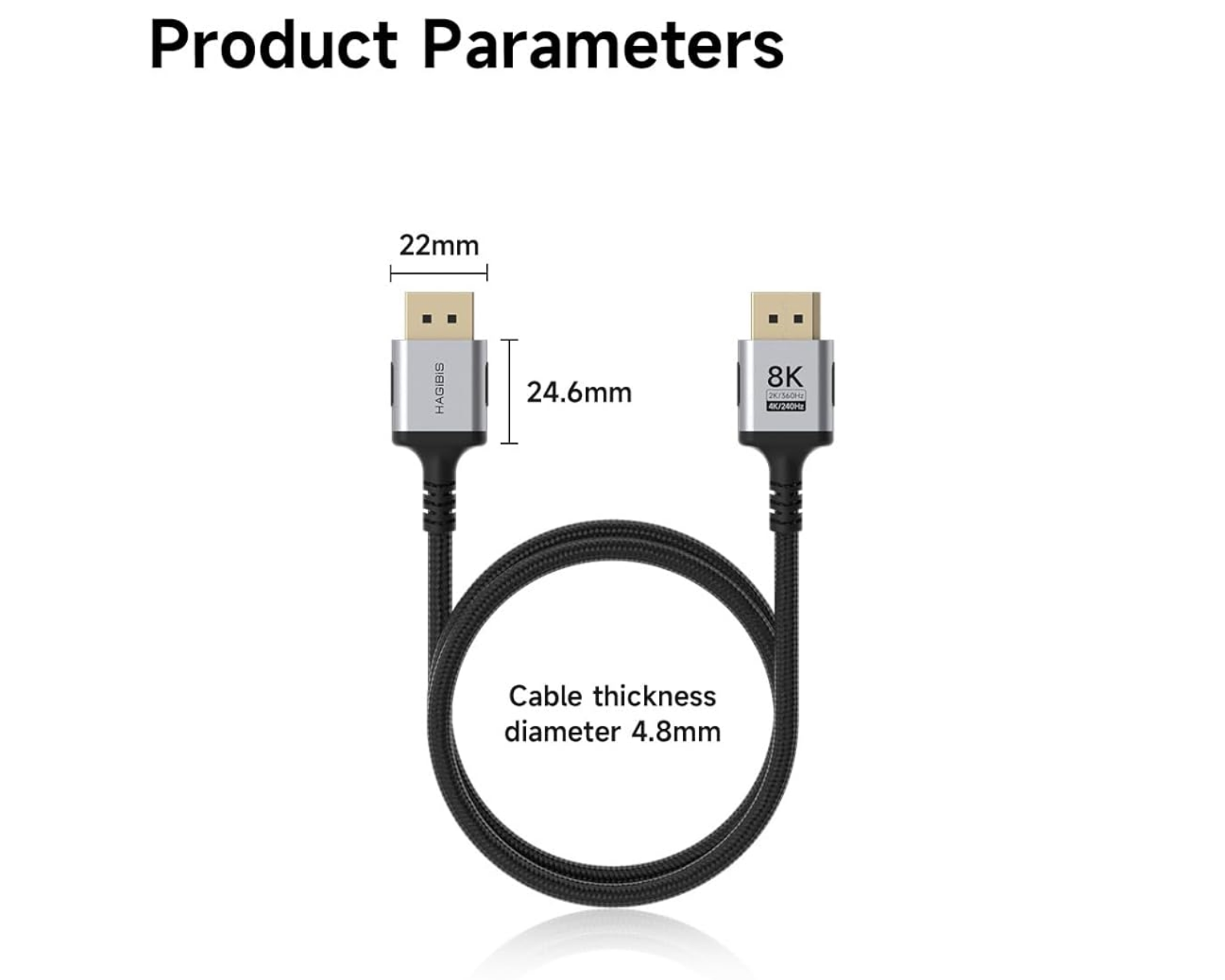 Hagibis 8K DisplayPort-kabel är en högpresterande kabel som stödjer upplösningar upp till 8K(7680x4320)@60Hz och 4K@240Hz. Den är avsedd för gamers och användare som söker en stabil och högkvalitativ bildöverföring. Kabelns överföringshastighet når upp till 32.4 Gbps och den erbjuder stöd för Dynamic HDR, vilket gör att färgnivåerna blir mer realistiska och tydliga.Kabeln är konstruerad med en flexibel, flätad design som gör den hållbar och motståndskraftig mot böjning. Med en kärna av 34AWG tennbelagd syrefri koppar samt aluminium- och grafenskydd, kan kabeln motstå signalinterferens och säkerställa en stabil bildkvalitet. Den är kompatibel med de flesta grafikkort och bildskärmar med DisplayPort, vilket maximerar prestandan utan att använda förlängningar eller adaptrar som kan påverka signalen negativt.