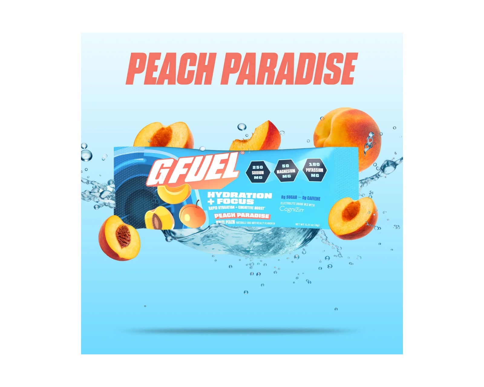 Peach Paradise Hydration + Focus Pack är en dryck och kosttillskott från G FUEL. Produkten erbjuder 20 portioner av en välsmakande koncentratlösning som är avsedd för att stödja hydrering och fokus. Den är fin att använda under långa spelsessioner eller intensiva träningspass. Packens huvudkomponenter är bestämda för att ge en effektiv kombination av hydrering och koncentration, vilket kan vara användbart för gamers som eftersträvar optimal prestation.Produkten innehåller både naturliga och syntetiska ingredienser, vilket bidrar till dess smakprofil och funktionalitet. G FUEL:s fokus ligger på att kombinera smak och prestanda, och Peach Paradise är inget undantag. Förpackningen ger flexibilitet genom att vara enkel att blanda med vatten, vilket gör den lättillgänglig för konsumenten.