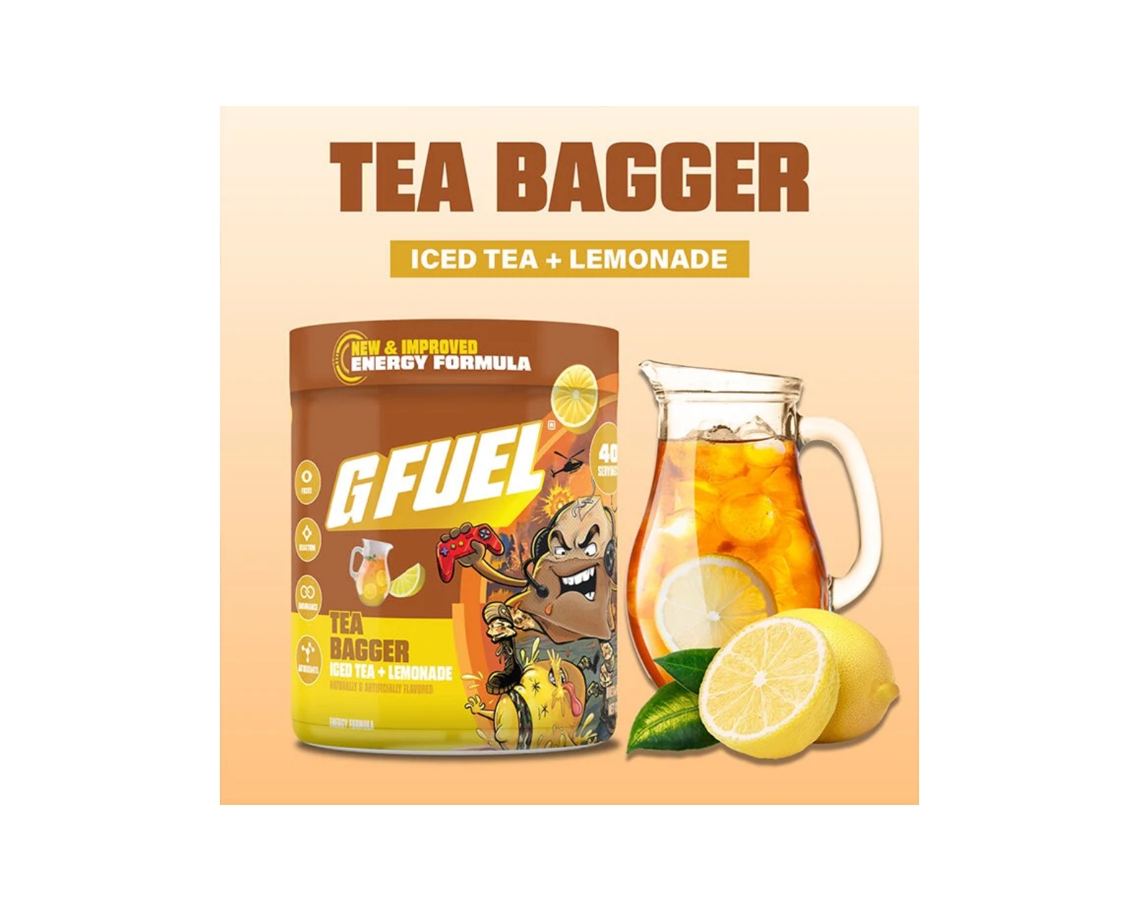 En energiprodukt från G FUEL som erbjuder en explosiv kombination av isad te och citronad. Med 40 portioner per burk och en förbättrad Formel 2.0 får du både smak och energi för att prestera på topp under spel och andra aktiviteter. Den är framtagen för att ge fokus, uthållighet och energi utan crash.Produkten är fri från socker, fyllnadsmedel och ger en ren energikick. Den innehåller 140 mg koffein per portion, tillsammans med vitaminer som B6, B12 och niacin som bidrar till ökad minneskapacitet och reaktionstid. Cholin är även inkluderat för att ge en kraftfull energikick utan crash, vilket gör den till ett bra val för både spel och vardagligt arbete.