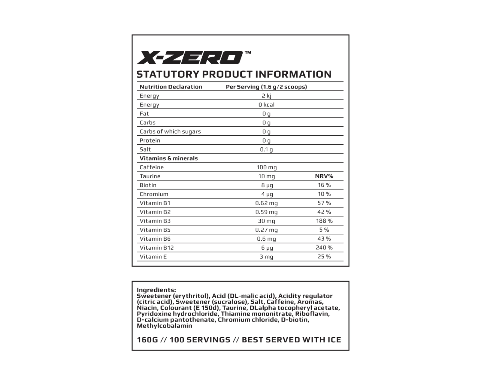 | Koffein | 100 mg per servering |