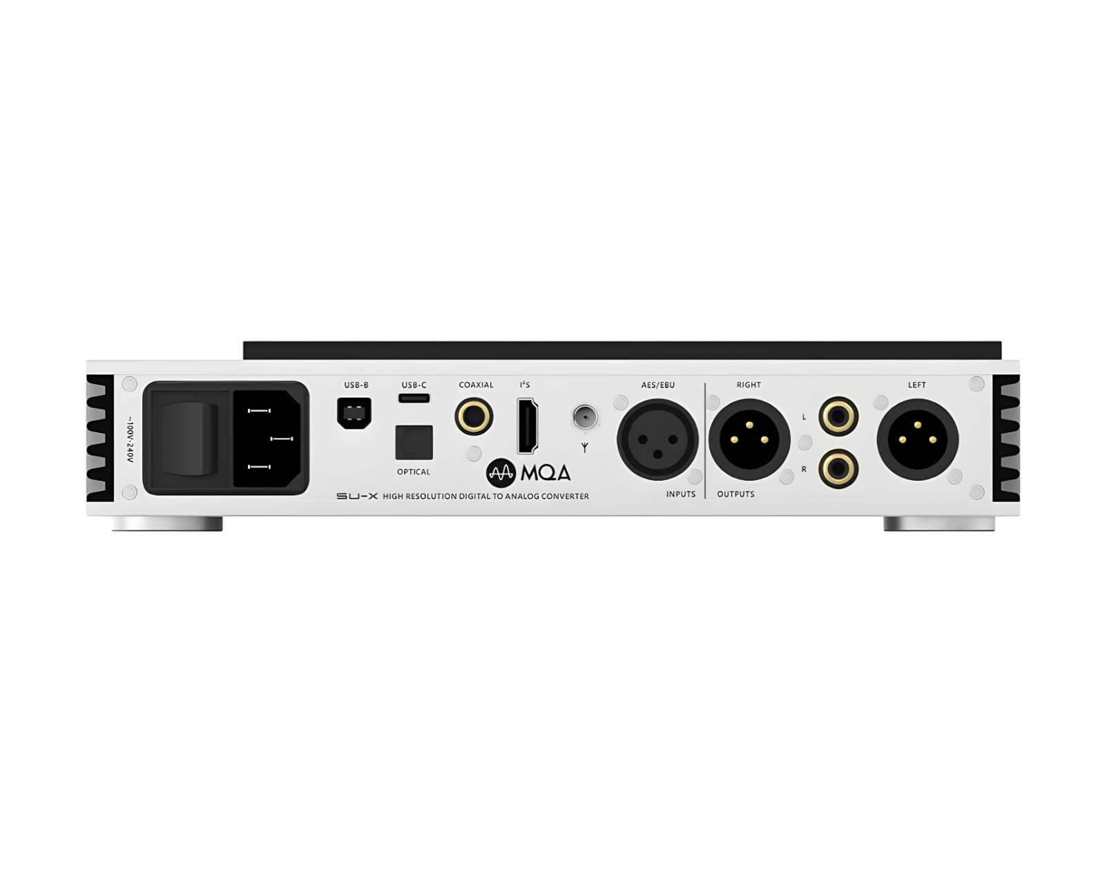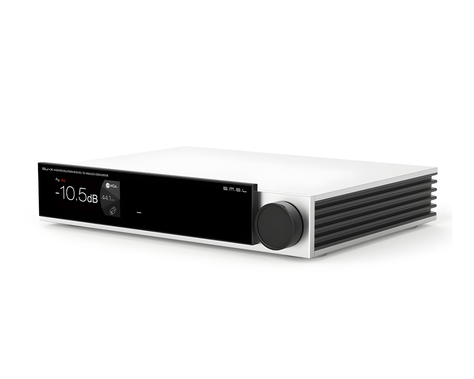 SU-X DAC är en digital-analog omvandlare från SMSL som erbjuder avancerad ljudteknik för högkvalitativ ljuduppspelning. Den har stöd för mjukvarudecoding av MQA och MQA-CD, samt ansluter via USB, optisk, koaxial, AES och I2S med DSD-stöd. Den har en kapacitet för PCM upp till 32bit/768kHz och DSD512, vilket gör den mångsidig för olika ljudformat.Enheten är utrustad med den senaste generationens XMOS XU-316 och dubbla DAC-chip av typen ES9039MSPRO som garanterar hög ljudkvalitet. Dess konstruktion inkluderar två separata linjär strömförsörjningar för digitala och analoga enheter, en design som reducerar störningar och ger stabil kraftförsörjning. Dessutom implementeras åtta-kanal parallell kretsdesign för minskning av distorsion, ner till 0.00004% (-128dB). Kash-kretsystemet minimerar jitter, ytterligare förbättrar ljudupplevelsen.