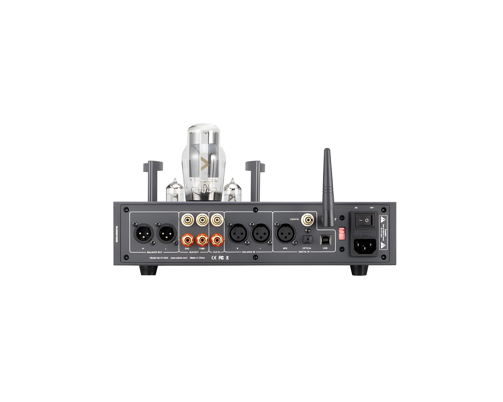 TA-32 är en DAC och rörförstärkare från xDuoo som kombinerar rörteknik och solid state-komponenter. Denna hybridförstärkare kan leverera upp till 3000 mW vid 32Ω, vilket gör den lämplig för både lättdrivna IEM-hörlurar och högimpedansmodeller. Med digitala ingångar inklusive USB, koaxial, optisk och Bluetooth erbjuder den flexibilitet för anslutning till flera typer av enheter.Denna enhet använder ett 5U4G-vakuumrör för likriktning och två matchade Ray Tubes 12AU7 CORE för värme i mellanregister och diskant. Det klass-A-transistorsteg garanterar stabilt strömflöde och bidrar till en ljudåtergivning med detaljerad och varm klang. TA-32:s modulära DAC-design gör det möjligt att enkelt byta ut DAC-kortet för att skräddarsy ljudprofilen. Standard DAC-kortet är ROHM BD34301, men en separat AK4499EX-modul är även kompatibel. Förstärkaren fungerar även som en förförstärkare i ett stereosystem.